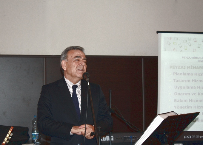 SAYGIDEĞER KONUKLAR SON DERECE KRİTİK GÜNLERDEN GEÇERKEN ÜLKEMİZ, BİZLERİNBİR ARADA OLABİLDİĞİ, GÖRÜŞLERİNİ PAYLAŞABİLDİĞİ BU ORTAMLARI OLUŞTURMAK SON DERECE ÖNEM TAŞIMAKTADIR. BUGÜN TÜRK MÜHENDİS VE MİMAR ODALAR BİRLİĞİ DE DAHİL PEK ÇOK AYDINLIK CUMHURİYETİ SAVUNAN BİRİM, BÜYÜK BİR BASKI ALTINDA TUTULMAKTADIR. BU DURUM BİZ PEYZAJ MİMARLARINI DA SON DERECE RAHATSIZ ETMEKTEDİR. TMMOB‘ A YAPILAN SALDIRILARIN KABULLENİLMESİ MÜMKÜN OLMADIĞI GİBİ BUGÜN HER GÜNDEN DAHA FAZLA BİRLİK İÇİNDE VE TEK SES, TEK YÜREK OLMA GÜNÜDÜR. BİZ ANCAK BİR ARADA OLURSAK BU KARANLIK GÜÇLERE KARŞI " BİZ SİZDEN DAHA GÜÇLÜYÜZ " DİYEBİLİRİZ.