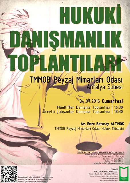 TMMOB Peyzaj Mimarları Odası olarak uzun süredir üyelerimize ücretsiz hukuki danışmanlık hizmeti veriyoruz. Hukuki konularda bilgilenme, yüz yüze danışma ve deneyim paylaşımı için Hukuk Müşavirliğimiz ve Devamlı Eğitim Sistemi Merkezi‘mizle birlikte bu hizmeti bir adım ileri taşıyoruz.
