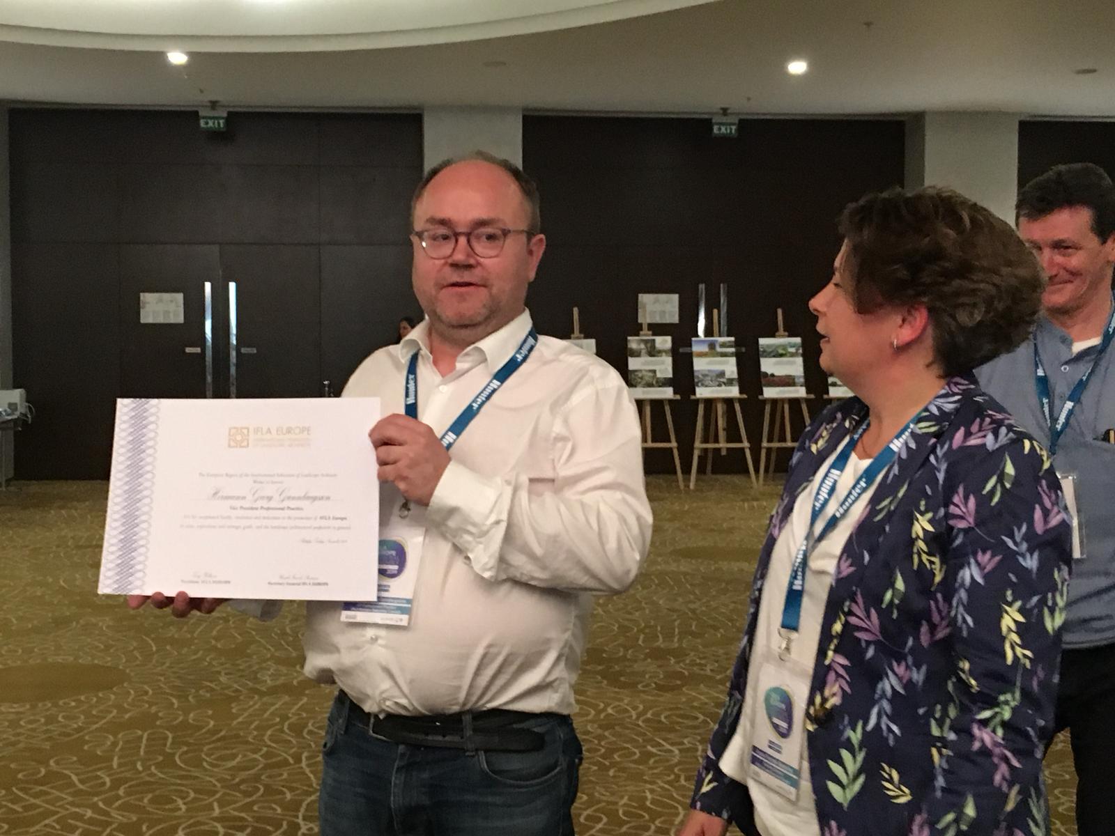 10. Ulusal Peyzaj Mimarlığı Ödüllerinde Turgay Ateş Genç Peyzaj Mimarlığı Ödülünü alan Odamız üyesi Mehmet Cemil Aktaş IFLA tarafından her sene düzenlenen "Avrupa Genç Profesyoneller" yarışmasında Konsept Proje ve Uygulama kategorilerinde birinci oldu. Yaptığı sunumun ardından ödüllerini aldı.
