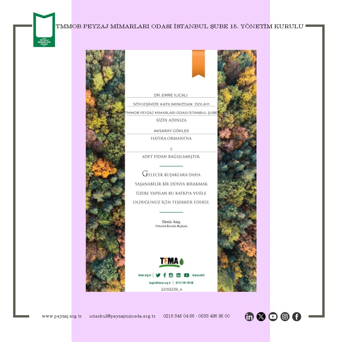 TMMOB Peyzaj Mimarları Odası İstanbul Şubesi olarak düzenlediğimiz, Şube 2. Başkanımız Sn. Nilüfer BİRİNCİ’nin moderatörlüğünde ve ÇEDBİK Başkanı Sn. Dr. Emre ILICALI’nın değerli sunumu ile gerçekleşen söyleşimiz, interaktif bir ortamda tamamlandı.
