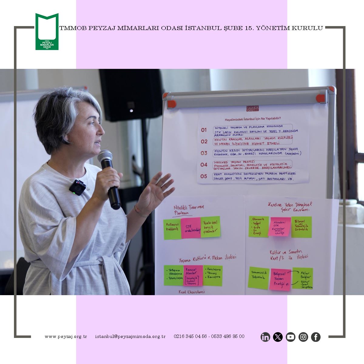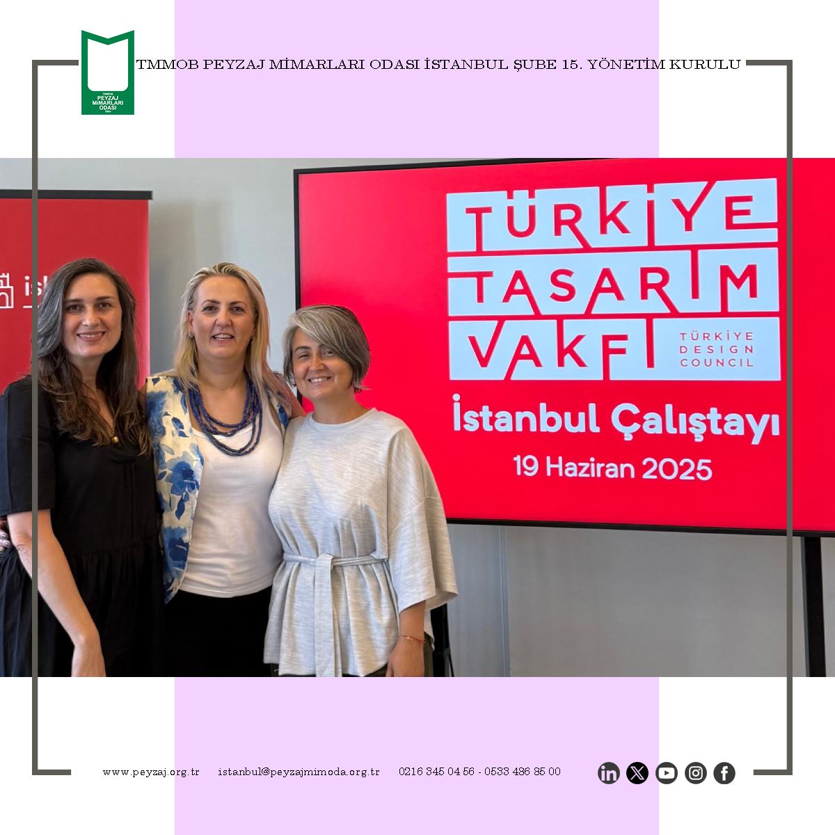 TMMOB Peyzaj Mimarları Odası İstanbul Şubesi 15. Dönem Yönetim Kurulu olarak; Türkiye Tasarım Vakfı’nın 19 Haziran 2025 tarihinde gerçekleştirdiği “İstanbul Çalıştayı” etkinliğine katılım sağladık.