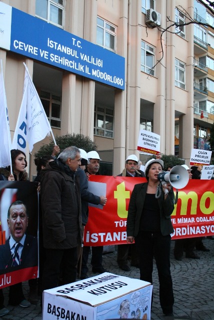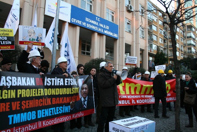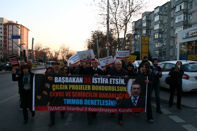 EMO İstanbul Şubesi önünde toplanarak Çevre ve Şehircilik Bakanlığı İstanbul İl Müdürlüğü önüne yürüyen yüzlerce TMMOB üyesi "Başbakan da istifa etsin, çılgın projeler durdurulsun. Çevre ve Şehircilik Bakanlığı‘nı, TMMOB denetlesin" pankartı açarak, "Bakanlığı TMMOB denetlesin" ve "Bakanlar yetmez Başbakan istifa" sloganları attılar. Eylemde TMMOB adına açıklamayı İstanbul İl Koordinasyon Kurulu Sekreteri Süleyman Solmaz yaptı.