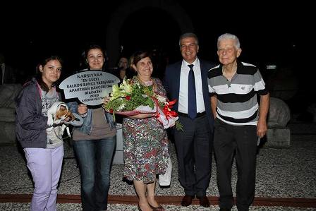 Ödül Töreninde Belediye Başkanı Cevat Durak öncelikle seçici kurul Üyelerine Şubemizi temsilen üyelerimizden Erhan ASLAN `a, Ege Üniversitesi Ziraat Fakültesi Peyzaj Mimarlığı Bölümü Araştırma Görevlisi Ayşe KALAYCI`ya, Karşıyaka Belediyesi Parklar Müdürlüğü`nden Peyzaj Mimarı Esra Erkmen`e, Peyzaj Mimarı Derya BAYRAKCI KEMER`e ve Ziraat Mühendisi Volkan DOĞAN`e emeklerinden dolayı birer teşekkür plaketi verdi.