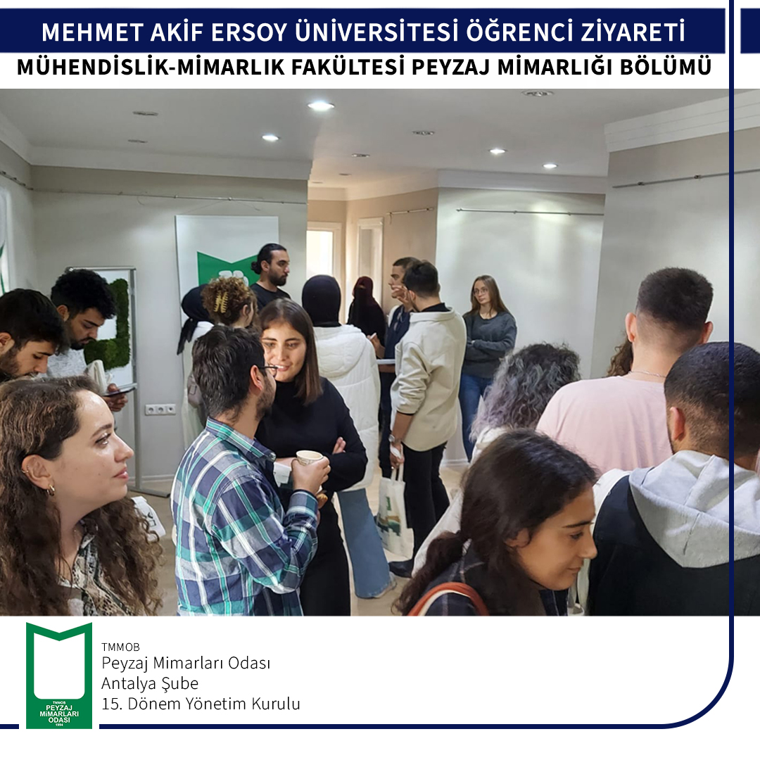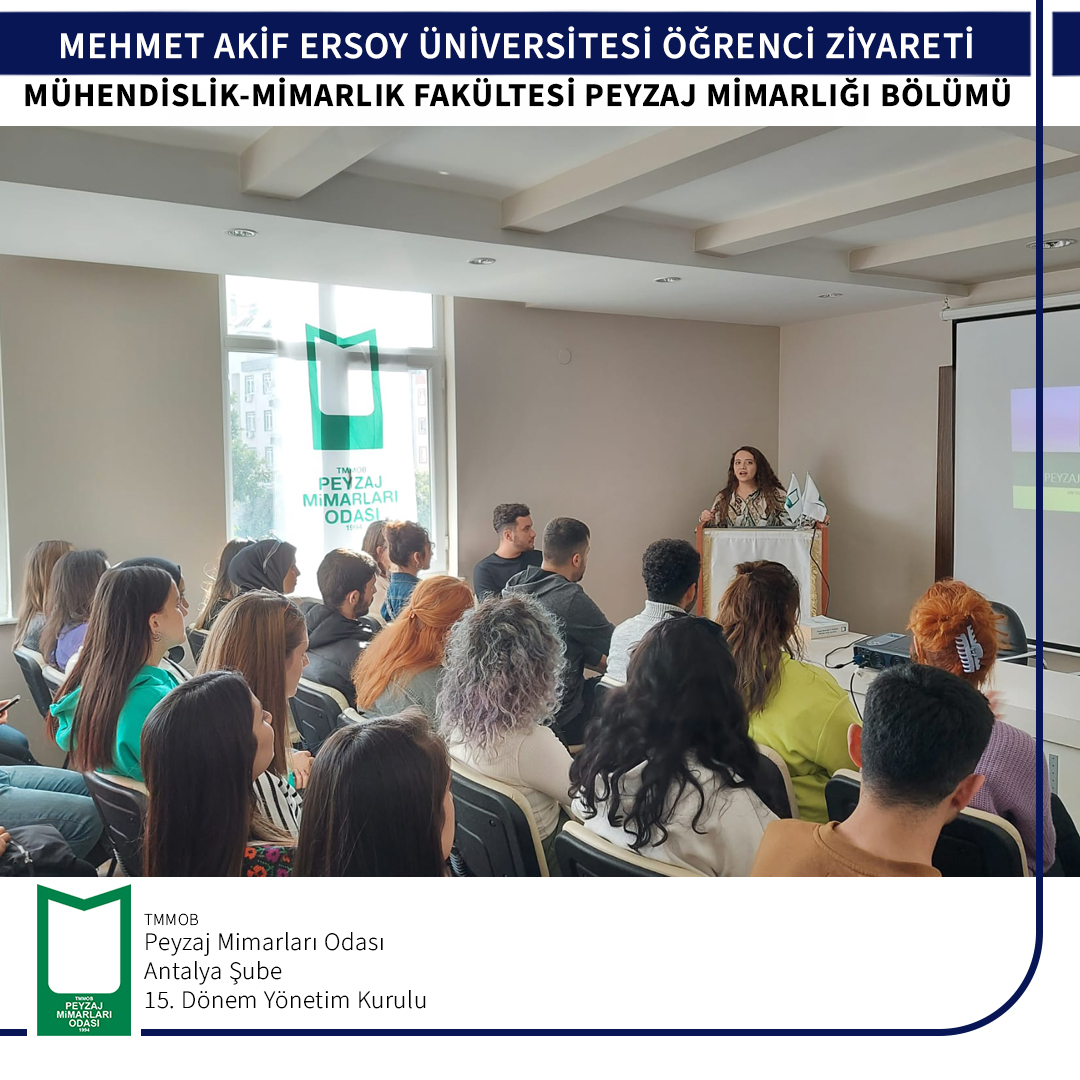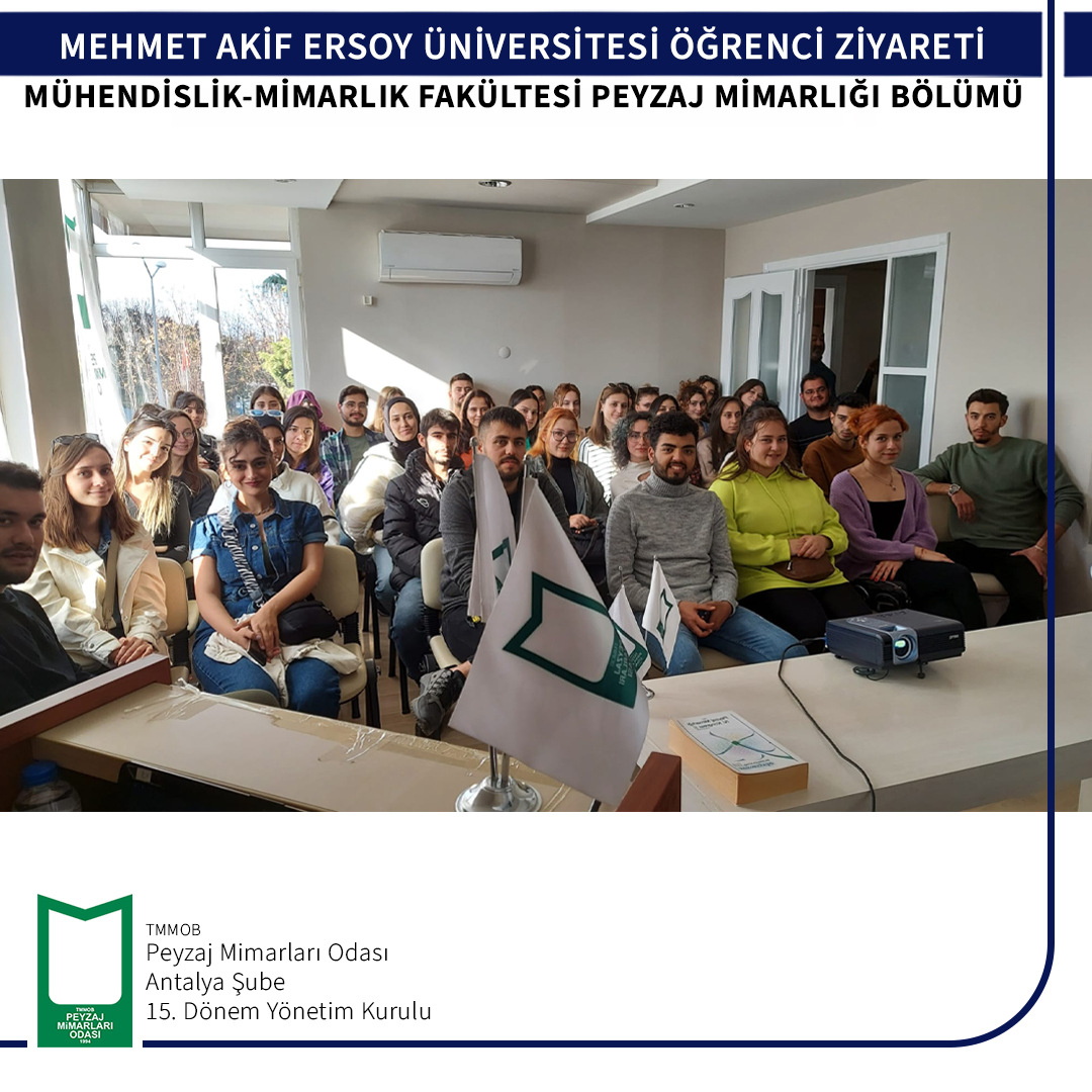 Burdur Mehmet Akif Ersoy Üniversitesi Mühendislik- Mimarlık Fakültesi Peyzaj Mimarlığı Bölüm öğrencileri 06 Aralık 2022 tarihinde odamıza ziyarete gelmişlerdir.