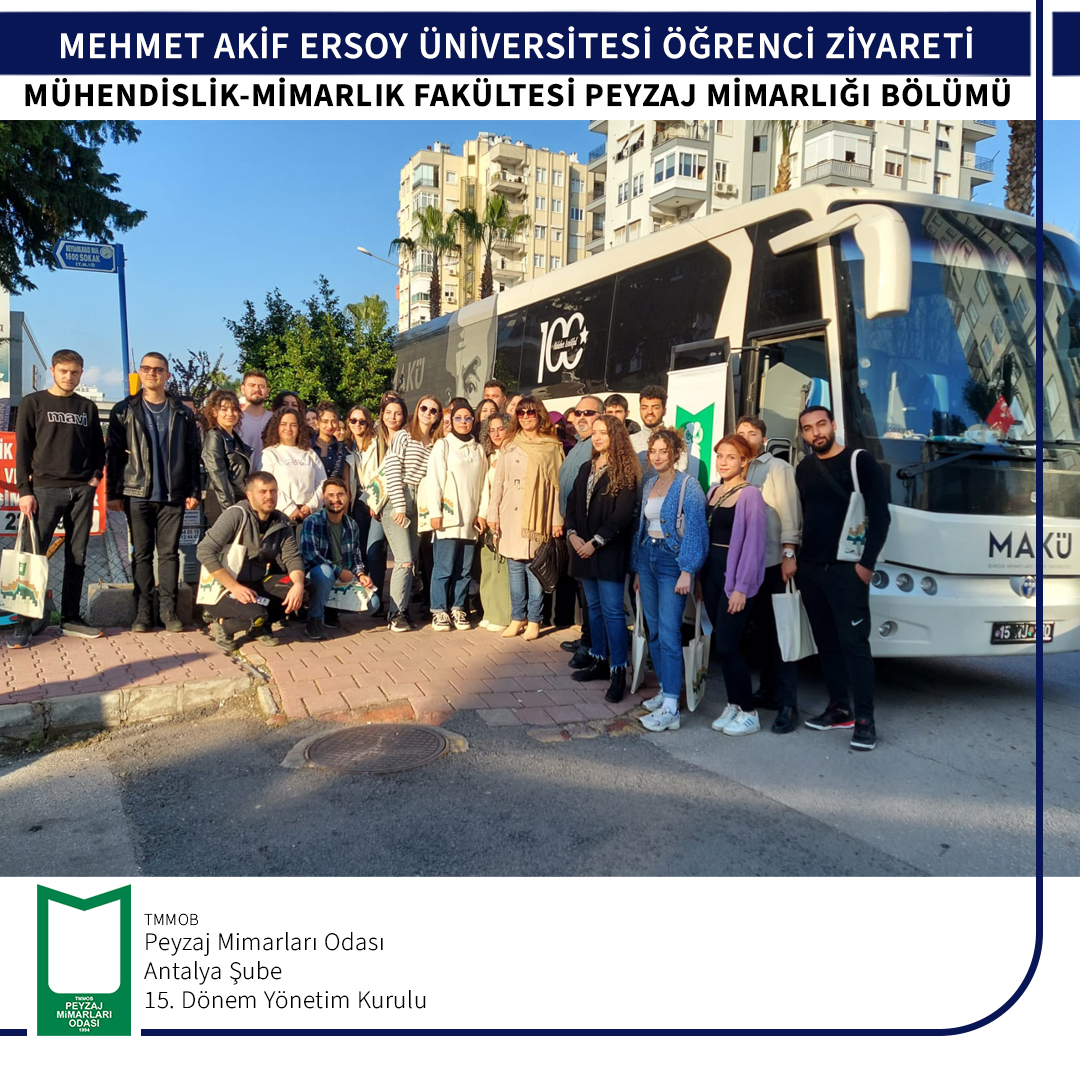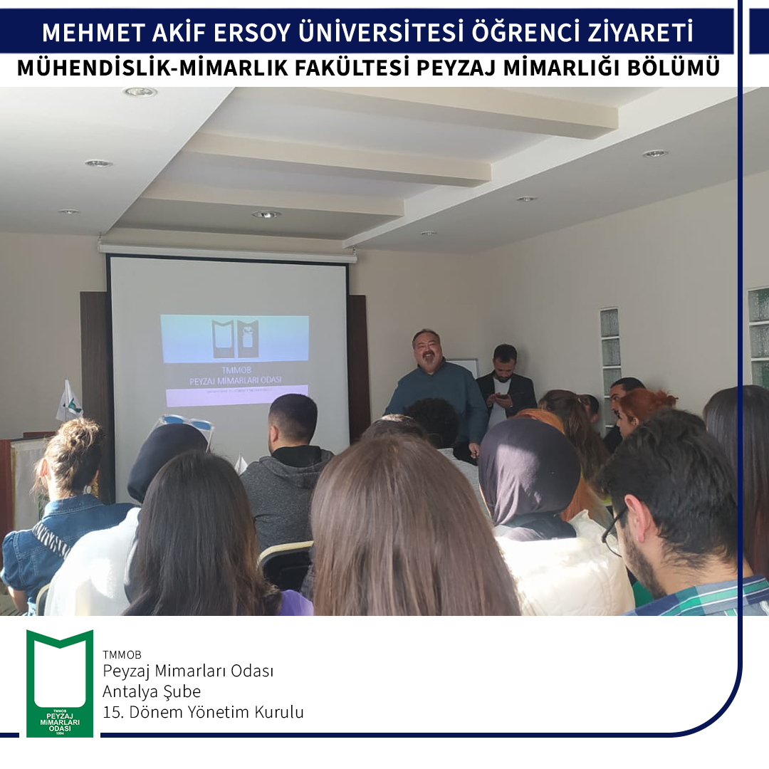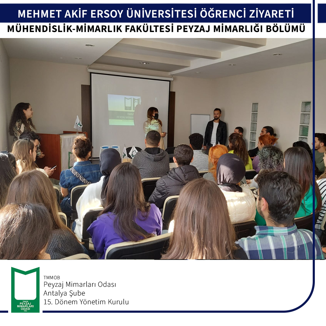 Burdur Mehmet Akif Ersoy Üniversitesi Mühendislik- Mimarlık Fakültesi Peyzaj Mimarlığı Bölüm öğrencileri 06 Aralık 2022 tarihinde odamıza ziyarete gelmişlerdir.