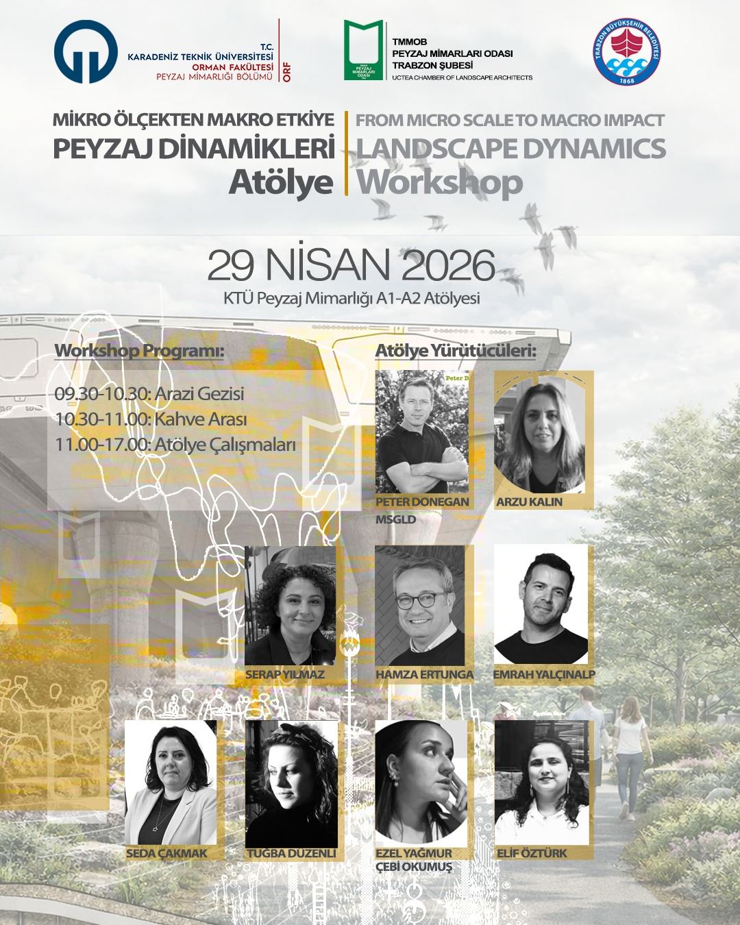 Trabzon’un kentsel dokusu içerisinde çoğu zaman göz ardı edilen, potansiyeli yeterince değerlendirilemeyen alanlar; doğru yaklaşımlarla kentin yaşam kalitesine doğrudan katkı sunabilecek güçlü mekânsal fırsatlar barındırmaktadır. Bu atölye, özellikle köprü altı gibi “artık alan” olarak görülen kentsel boşlukların, peyzaj mimarlığı perspektifiyle yeniden ele alınmasını amaçlamaktadır.