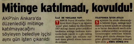 MİTİNGE GİTMEDİ, İŞİNDEN KOVULDU.