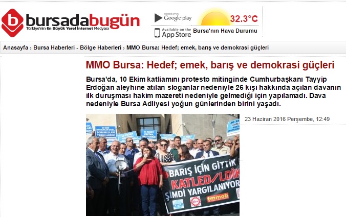 MMO BURSA: HEDEF; EMEK, BARIŞ VE DEMOKRASİ GÜÇLERİ 23.06.2016 / BURSADA BUGÜN