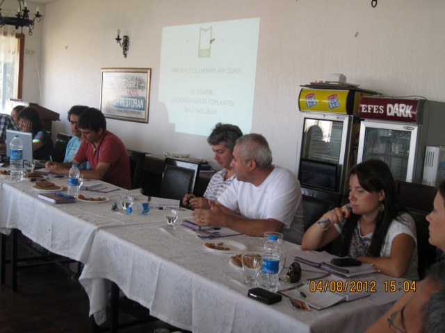 İkinci Koordinasyon Toplantısı; Oda Yönetim Kurulundan Ozan Yılmaz,Redife Kolçak, Erkan Erdoğan, Semiha Demirbaş Çağlayan, Adana Şube Yönetim Kurulundan Sekreter üye Özlem Aytok, Antalya Şube Yönetim Kurulu Başkanı Teoman Akçalı, 2. başkan Başak Celayer Sekreter Keziban Arıcan, Sayman Ersin Akkaya , Üye Zübeyde Özsu, İstanbul Şube Yönetim Kurulu Başkanı Barış Işık, 2. Başkan Ebru Umut Çetin, Sekreter Başak Özer, Sayman Sibel Şavkın ,Üye Mustafa Terzioğlu, Faruk Dığış ve Ulaş Erayan, İzmir Şube Yönetim Kurulu Başkanı Bilgi Yarcı Bukrek, Sekreter Esra Erkmen, Sayman Elvin Sönmez Güler, Üye Nuran Altun, Y. Sadun Yurtsev ve Esen Kurt , Aydın İl Temsilcisi Barış Kara, Balıkesir il Temsilcisi Serdar Göktekin ve Emel Göktekin, Bartın İl Temsilciliği Gözlemcisi Veli Koca, Bursa İl Temsilcisi Necla Yörüklü, Denizli İl Temsilcilsi Merve Sakarya ve Mine Çelik, Eskişehir İl Temsilcisi Nezih Ağaoğlu ve Özge Işık, Kayseri İl Temsilcisi Başak Güleser, Kocaeli İl Temsilcisi Aysun Çelik, Konya İl Temsilcisi Ayşe Özcan ve Özcan Kuzu, Mersin İl Temsilcilisi Şeniz İşcan Ateş, Muğla İl Temsilciliği Saymanı Selda Atalay Aksu ve Trabzon İl Temsilcisi Hamza Ertunga ve Emrah Yalçınalp katılımı ile iki gün süren Koordinasyon Toplantısının 2. gününde ise Genel Kurul‘da görevlendirilmiş bulunduğumuz Yönetmelik çalışmaları üzerine kurulan Komisyonların hazrlamış oldukları taslak çalışmalar sunularak tüm yönetim kadrolarımızın görüşlerine sunulmuştur.
