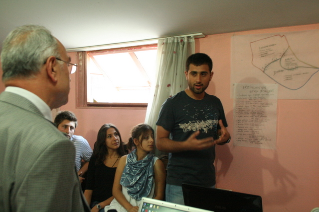 Yaz Kampının II. Haftasının sürpriz konuğu TMMOB Yönetim Kurulu Başkanı Sn Mehmet SOĞANCI oldu. Öğrencileri çalışma yaptıkları stüdyoda ziyaret ederek, 2 saatlik sohbet toplantısı yapan SOĞANCI, öğrencilerden gelen TMMOB a ilişkin soruları yanıtladı.