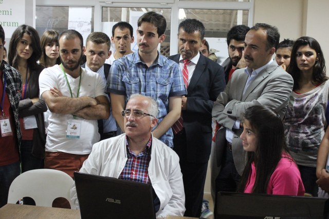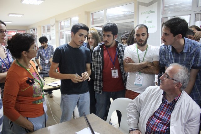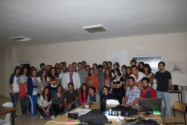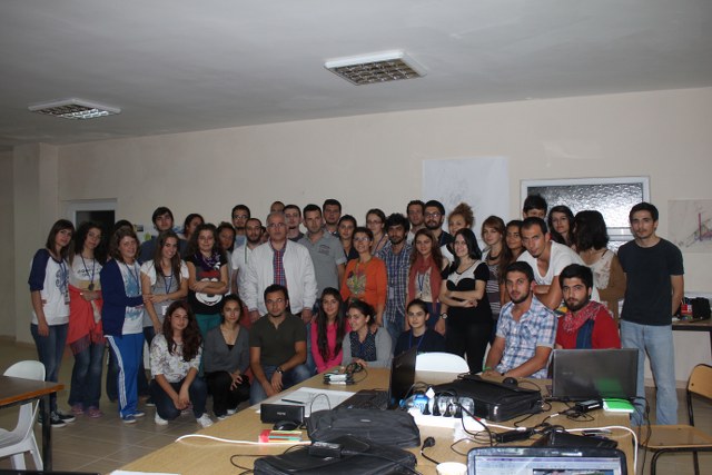 Yaz Kampının II. Haftasının sürpriz konuğu TMMOB Yönetim Kurulu Başkanı Sn Mehmet SOĞANCI oldu. Öğrencileri çalışma yaptıkları stüdyoda ziyaret ederek, sohbet toplantısı yapan SOĞANCI, öğrencilerden gelen TMMOB a ilişkin soruları yanıtladı.