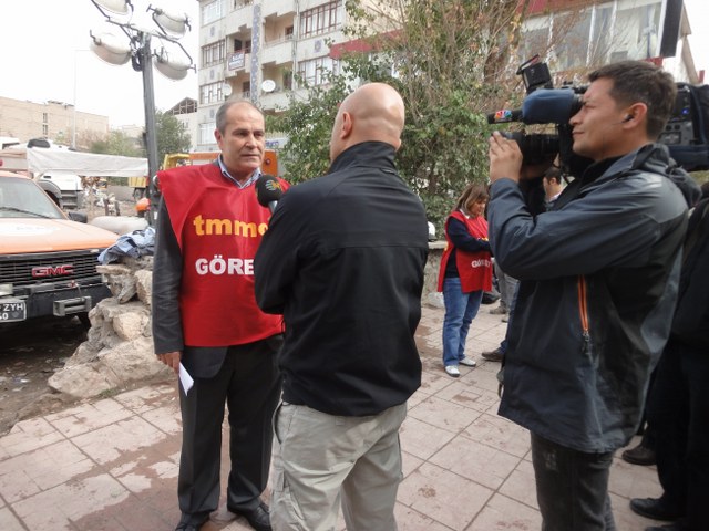 Van‘a giden heyette; TMMOB Yönetim Kurulu Başkanı Mehmet Soğancı, TMMOB Yönetim Kurulu II. Başkanı Selçuk Uluata, TMMOB Yürütme Kurulu Üyeleri Alaeddin Aras ve Ayşegül Oruçkaptan, İnşaat Mühendisleri Odası Başkanı Serdar Harp, İMO Yönetim Kurulu Sekreter Üyesi Levent Darı, İMO Yönetim Kurulu Sayman Üyesi Züber Akgöl, İMO Ankara Şube Başkanı Nevzat Ersan, Elektrik Mühendisleri Odası Başkan Yardımcısı Serdar Paker, Gıda Mühendisleri Odası 2. Başkanı Şennur Özkaya, Harita ve Kadastro Mühendisleri Odası 2. Başkanı Hasan Tuzcu, Jeofizik Mühendisleri Odası Başkanı Metin Altay, Jeoloji Mühendisleri Odası Yönetim Kurulu Başkanı Dündar Çağlan, Kimya Mühendisleri Odası Başkanı Mehmet Besleme, Maden Mühendisleri Odası Başkanı Mehmet Torun, Makina Mühendisleri Odası Başkanı Ali Ekber Çakar, Şehir Plancıları Odası Başkanı Necati Uyar, Ziraat Mühendisleri Odası Başkanı Turhan Tuncer, İMO Afet Hazırlık ve Müdahale Kurulu Üyeleri Nejat Bayülke ve Akif Doğan, Doç. Dr. Erdem Canbay (ODTÜ), Doç. Dr. Murat Altuğ Erberik (ODTÜ), Doç. Dr. Mustafa Tolga Yılmaz (ODTÜ) yer alıyor. Heyete TMMOB‘ye bağlı odaların Diyarbakır şubelerinden gelen 30 kişi ve Van İKK birimlerinden katılanlar da eşlik ediyor.
