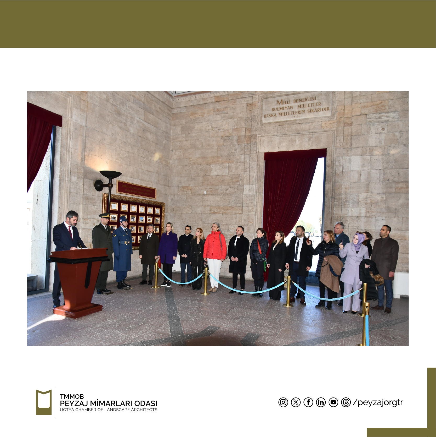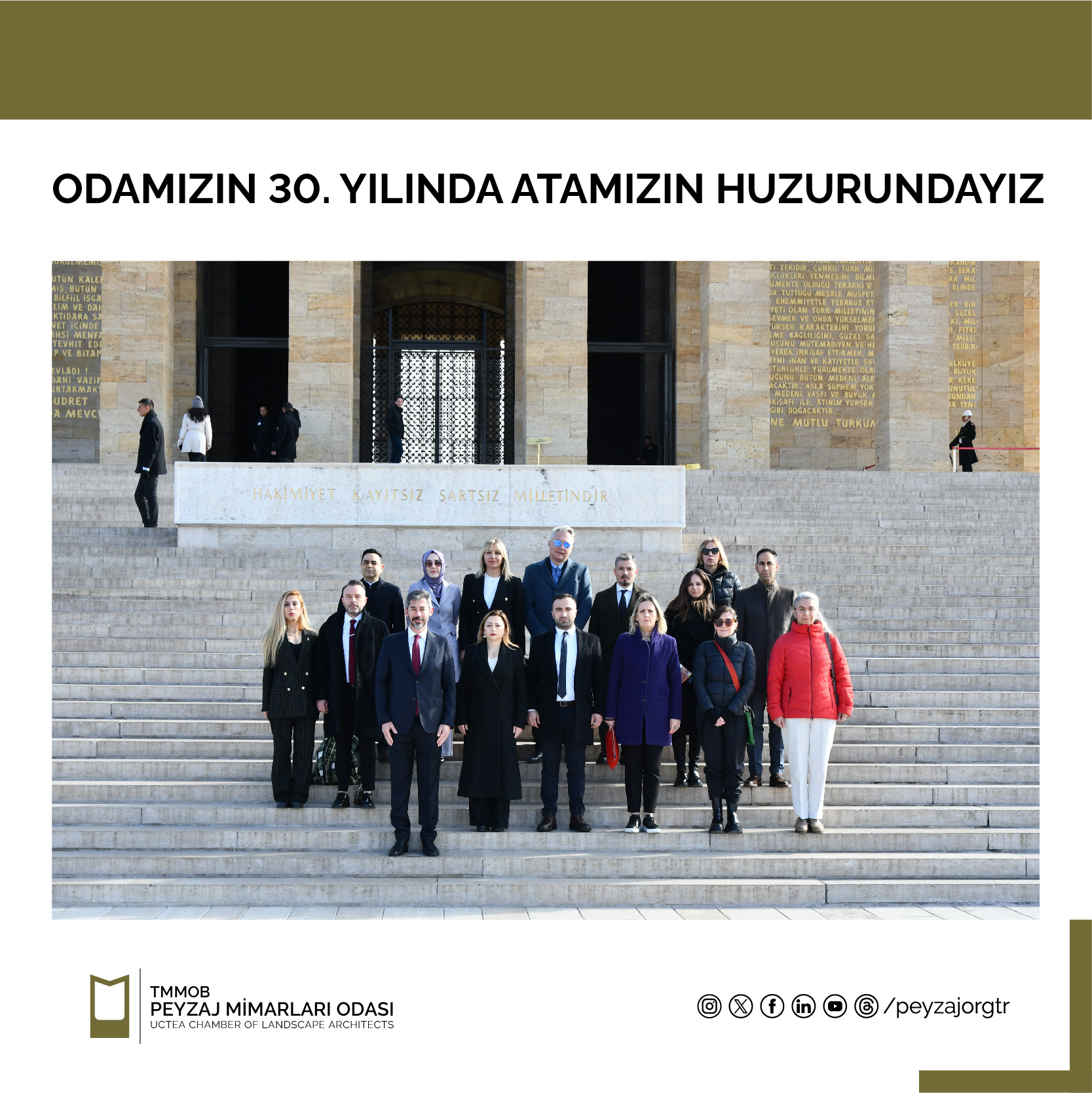 Odamızın kuruluşunun 30. yılında Atatürkün mozolesine "TMMOB Peyzaj Mimarları Odası" yazılı çelengin konulmasının ardından saygı duruşunda bulunulmuştur. Anıtkabir Özel Defterini imzalayan 15. Dönem Yönetim Kurulu Başkanı Yasin OTUZOĞLU, deftere şunları yazmıştır: