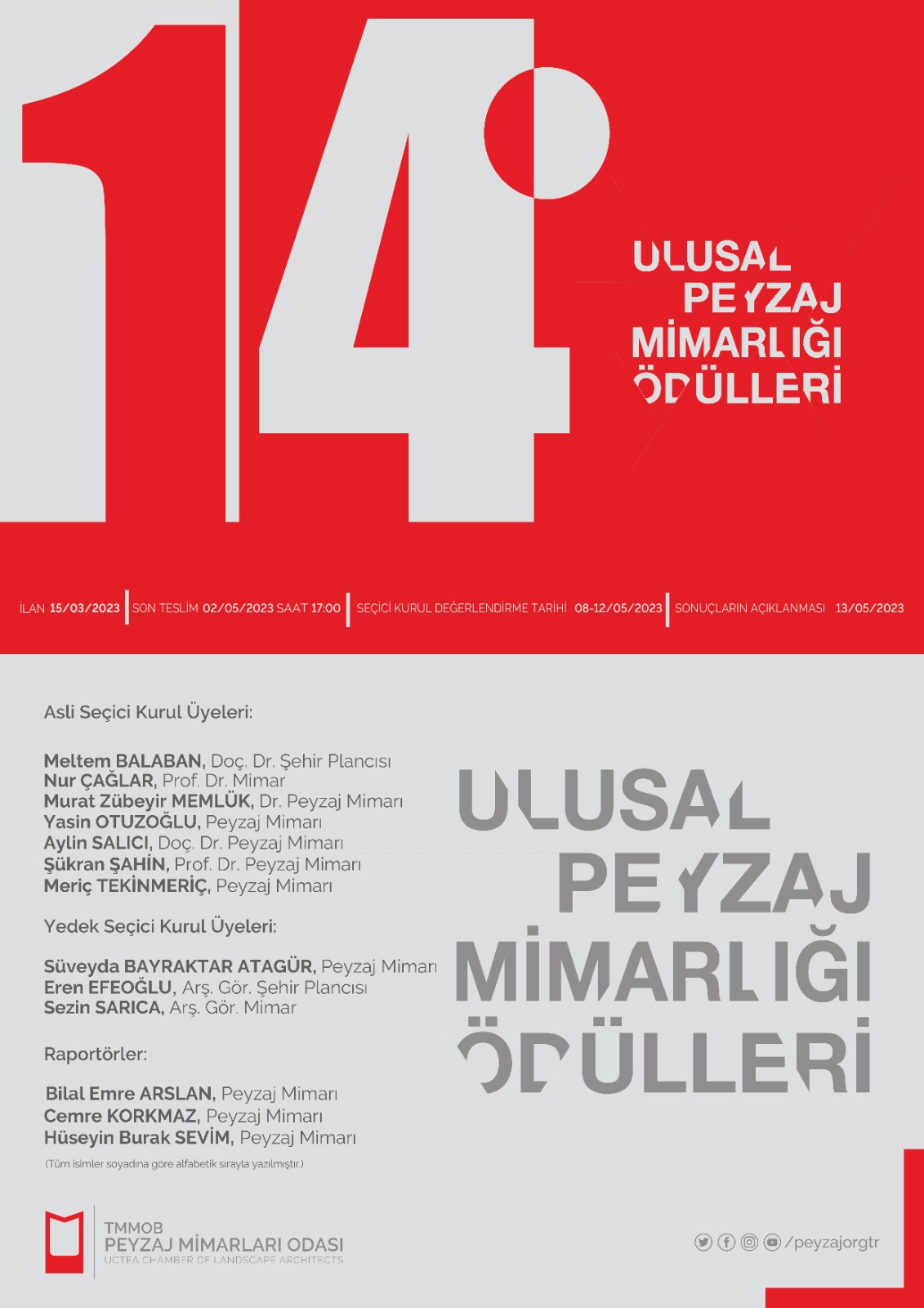 14. Ulusal Peyzaj Mimarlığı Ödülleri Şartnamesi için tıklayınız.