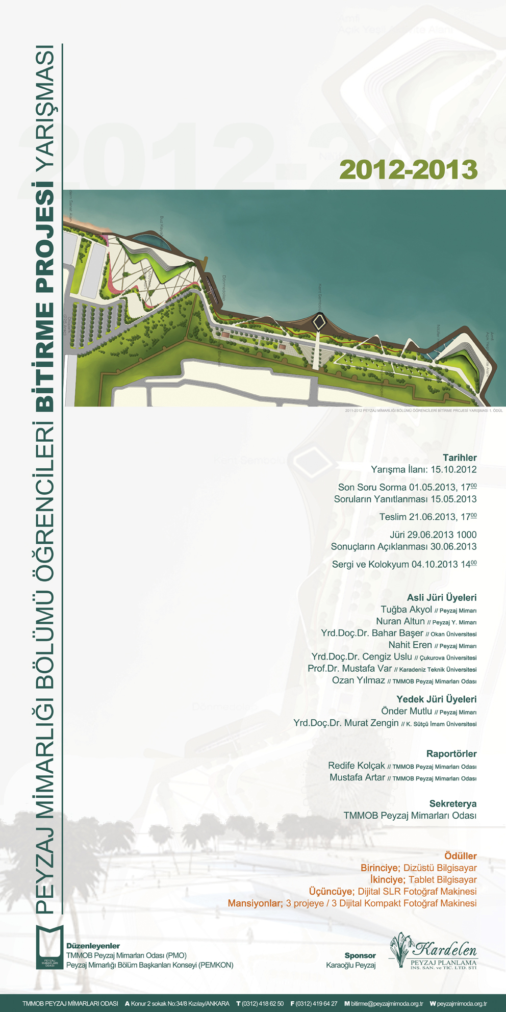 Peyzaj Mimarlığı Bölümü Öğrencileri Bitirme Projesi Yarışması 2012 - 2013, Peyzaj Mimarlığı Bölümleri ile TMMOB Peyzaj Mimarları Odası arasında koordinasyon, işbirliği ve üniversitelerimizde faaliyet gösteren PMOGenç Öğrenci üye komisyonu arasındaki iletişimi güçlendirmek üzere planlanan Öğrenci Bitirme Proje Yarışması Odamızın ilk kez olarak düzenlenen; Peyzaj Mimarlığı Bölümü Öğrencileri Bitirme Projesi Yarışması 2012 - 2013 ödülleri sahiplerini buldu.