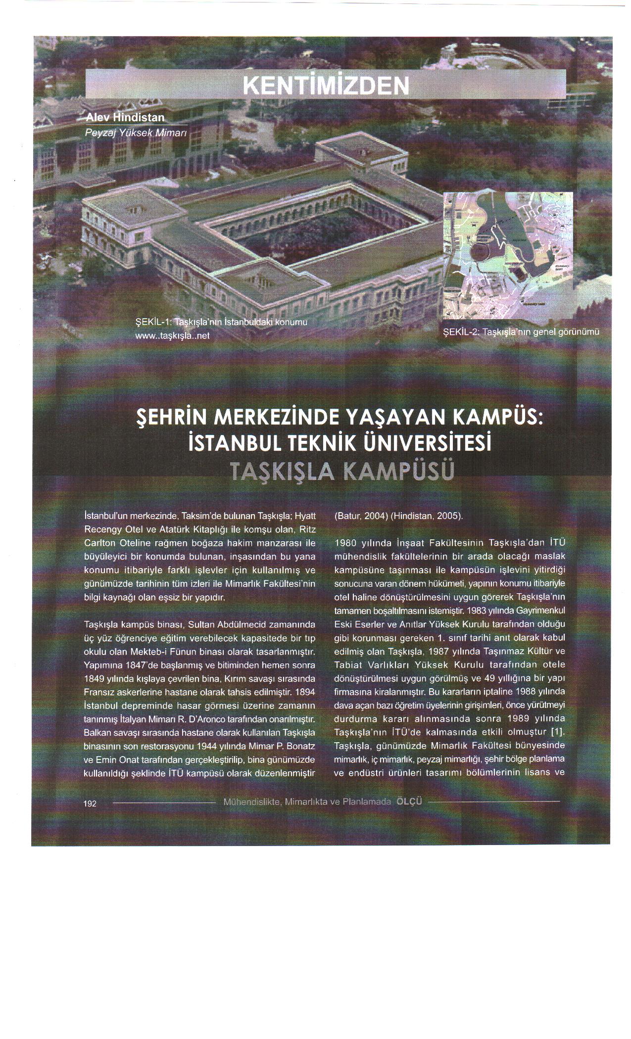 Sayın Alev Hindistan‘ın Şehrin Merkezinde Yaşayan Kampüs: "İstanbul Teknik Üniversitesi Taşkışla Kampüsü" Başlıklı yazısı ektedir.