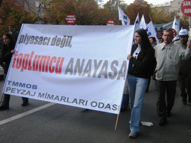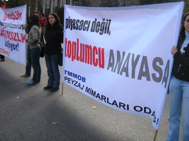 Hazırlanan anayasa taslağıyla, neo-liberal politikalar kurumsallaştırılmak, özelleştirmeler anayasal bir statüye getirilmek, istemektedir, devlete piyasayı geliştirme vazifesi yüklemek istenmektedir. Bizler böyle bir anayasayı kabul etmeyeceğiz!