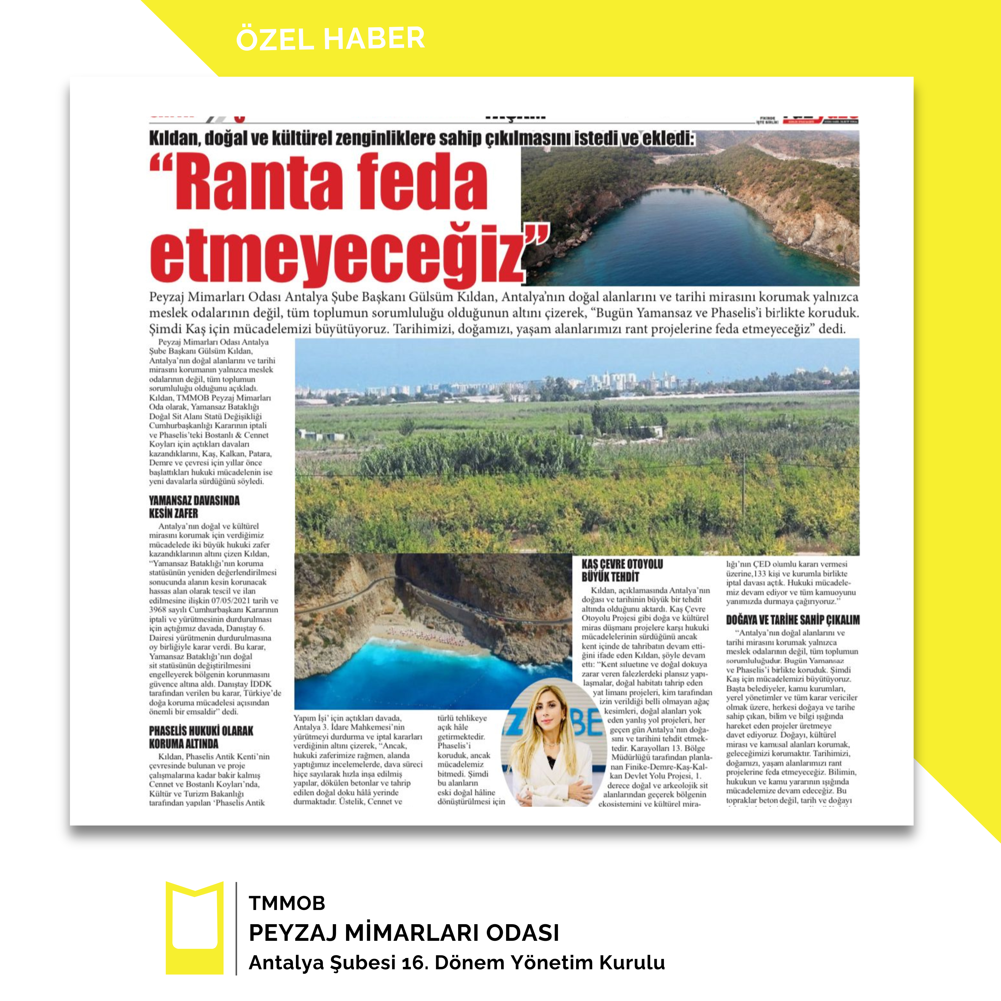 TMMOB Peyzaj Mimarları Odası olarak, Yamansaz Bataklığı Doğal Sit Alanı Statü Değişikliği Cumhurbaşkanlığı Kararının iptali ve Phaselis’teki Bostanlı & Cennet Koyları için açtığımız davaları kazandık! Kaş, Kalkan, Patara, Demre ve çevresi için yıllar önce başlattığımız hukuki mücadelemiz ise yeni davalarla sürüyor!