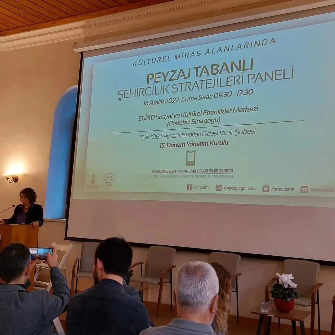 8. Ulusal Peyzaj Mimarlığı Kongresi öncesinde, 16 Aralık 2022 Cuma günü TMMOB Peyzaj Mimarları Odası İzmir Şubesi, İzmir Büyükşehir Belediyesi ve UNESCO İzmir Tarihi Liman Kenti Alan Başkanlığı işbirliğiyle "Kültürel Miras Alanlarında Peyzaj Tabanlı Şehircilik Stratejileri" paneli gerçekleştirildi.