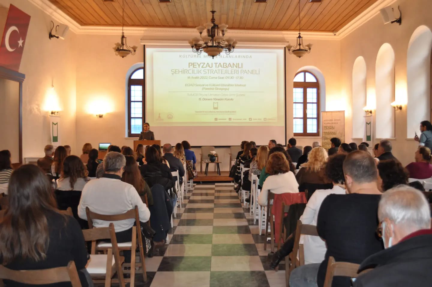 EGİAD Sosyal ve Kültürel Etkinlikler Merkezi (Portekiz Sinagogu)`nde 09.30-17.30 saatleri arasında 3 oturuma ayrılarak gerçekleştirilen panelde; 15 konuşmacı tarafından kültürel miras alanlarının korunması kapsamında iklime dirençli kent, yeşil altyapı, afet ve risk kavramlarını odağına alan bir yaklaşımla, miras alanları ve yakın çevresine yönelik bütüncül bir bakış açısı ortaya koyuldu.