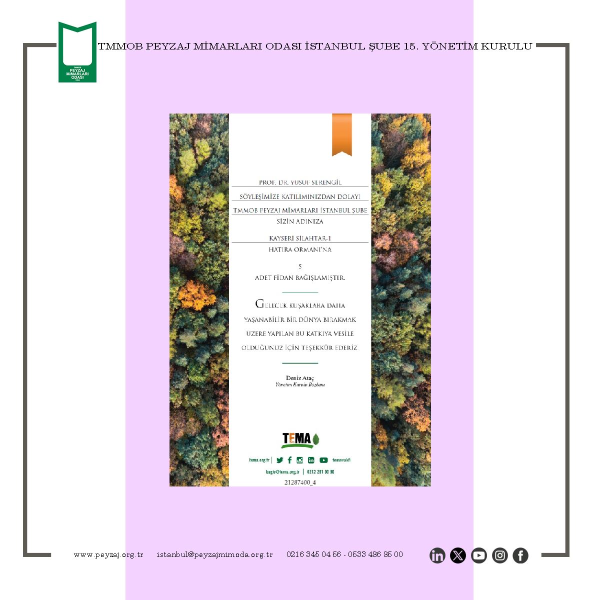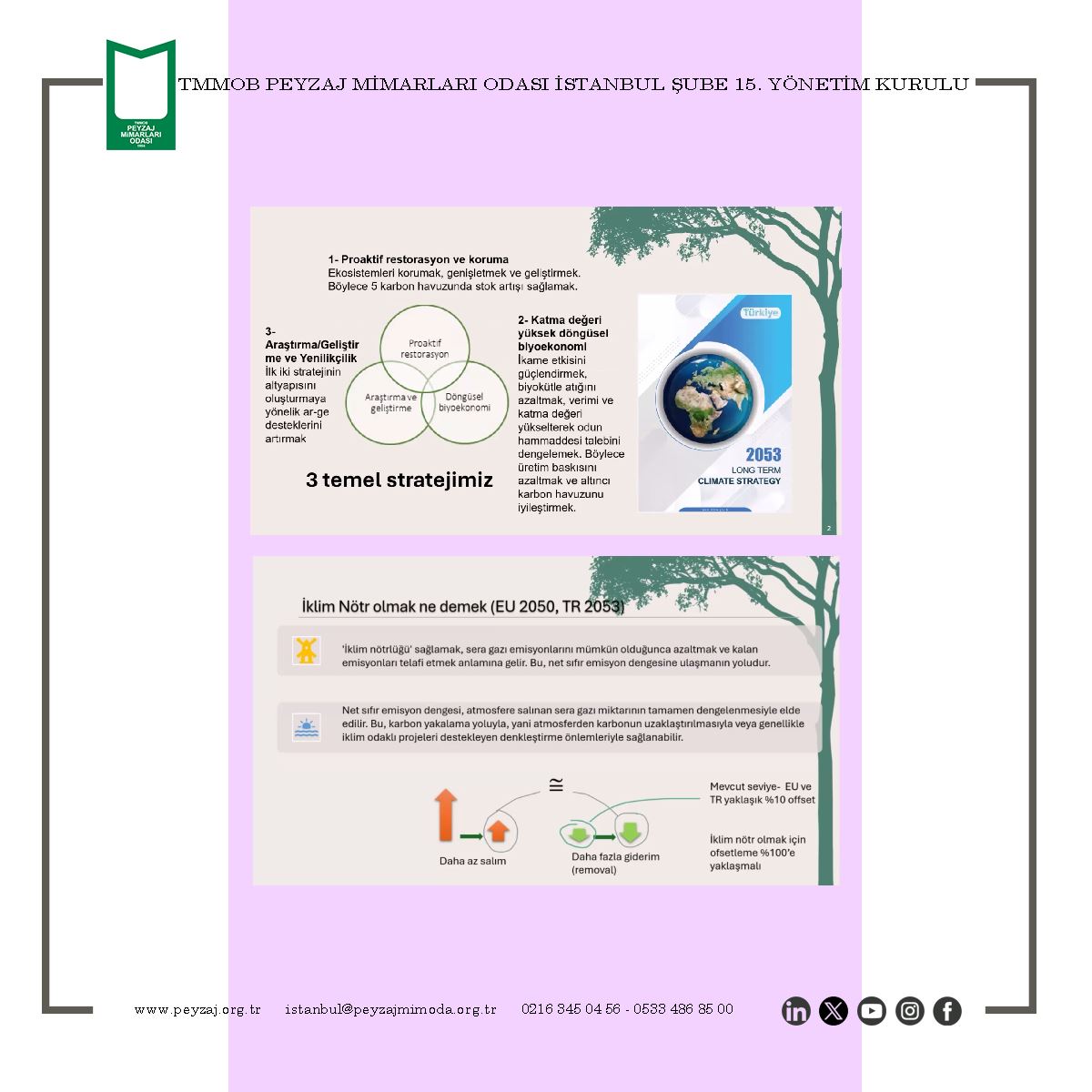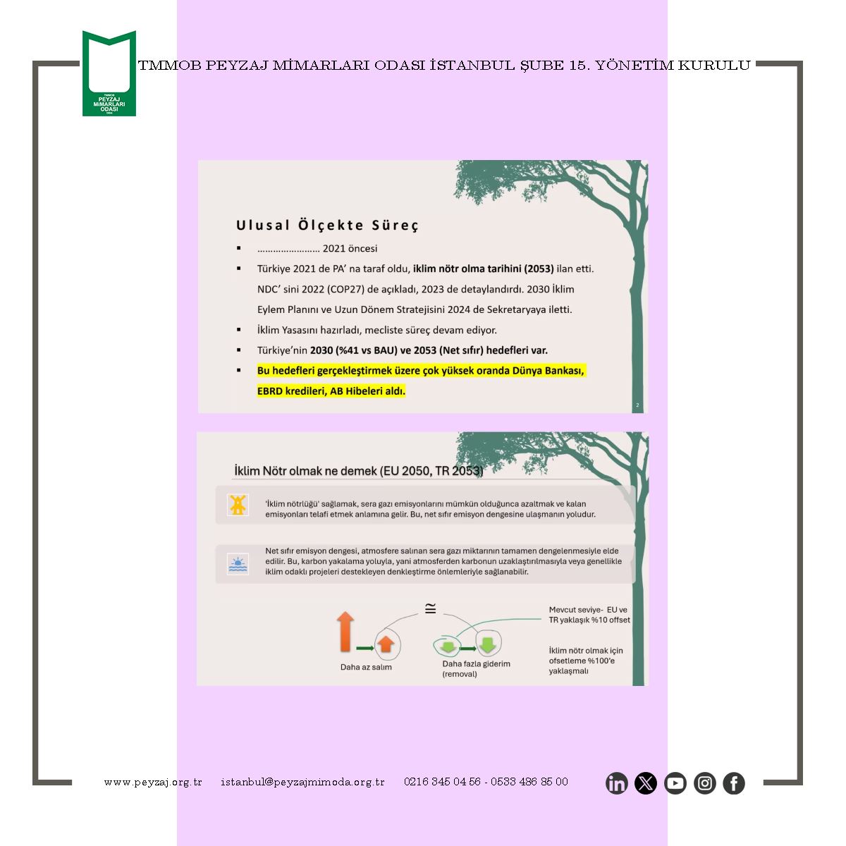TMMOB Peyzaj Mimarları Odası İstanbul Şubesi olarak; “Paris Anlaşması ve Türkiye`nin Sıfır Karbon Hedefi” konulu söyleşimizi, Trio Peyzaj İnşaat Mühendislik San. Ve Tic. A.Ş. desteği ile 18 Şubat 2025 Salı günü çevrim içi olarak gerçekleştirdik.