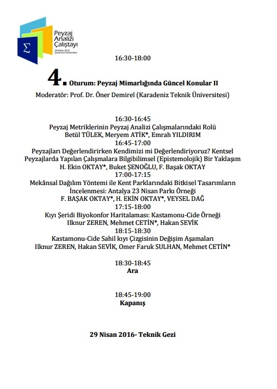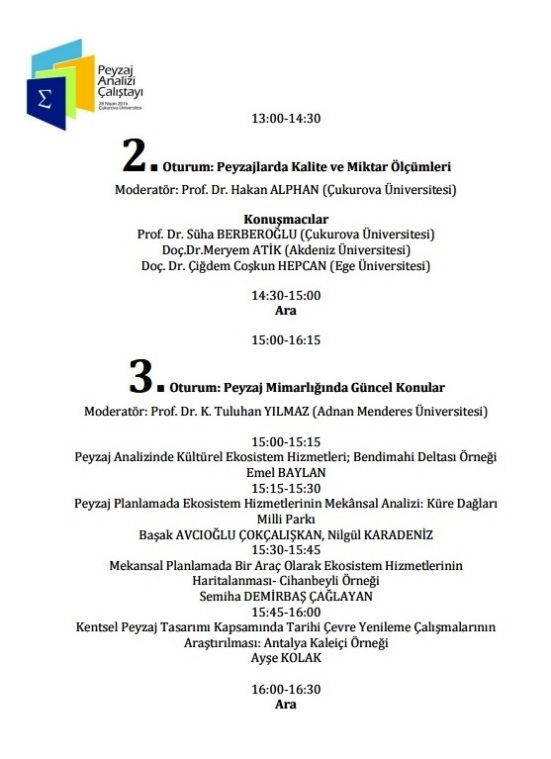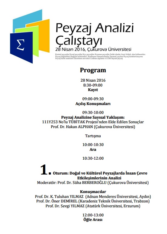 Çukurova Üniversitesi Peyzaj Mimarlığı Bölümü, Peyzaj Mimarları Odası Adana Şubesi, Peyzaj Araştıma Derneği, Peyzaj İzleme ve Değerlendirme Laboratuvarı tarafından ortaklaşa düzenlenen “Peyzaj Analizi Çalıştayı” 28 Nisan, 2016 Perşembe günü Çukurova Üniversitesi Akif Kansu Toplantı Salonunda gerçekleşecektir.