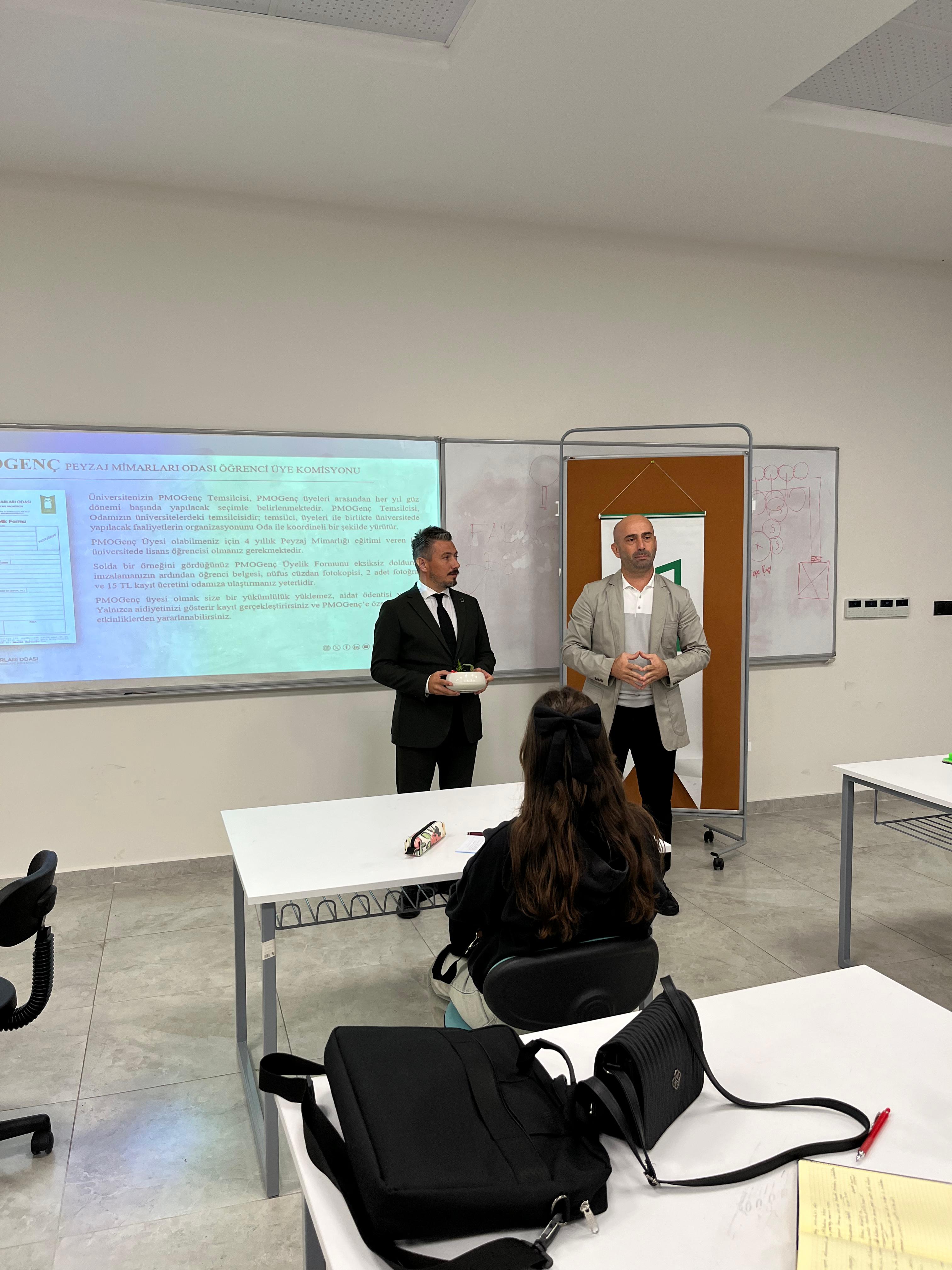 Şube Yönetim Kurulu Başkanı Doruk Görkem ÖZKAN tarafından Odamız, bağlı olduğumuz üst birlik TMMOB, tüm dünyada Peyzaj Mimarlarının çatısı olan ve uluslararası üyesi olduğumuz IFLA, Peyzaj Mimarları Odası Öğrenci Üye Komisyonu (PMOGenç) faaliyetleri ve mesleğimiz hakkında bilgiler paylaşılmıştır.