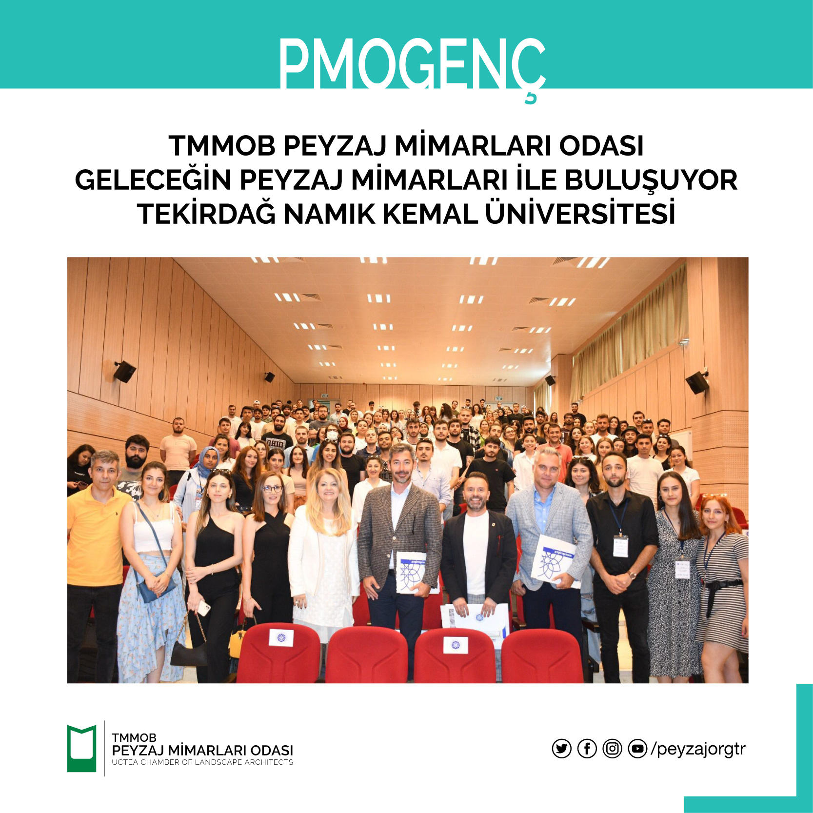 Tekirdağ Namık Kemal Üniversitesi Güzel Sanatlar, Tasarım Ve Mimarlık Fakültesi Peyzaj Mimarlığı Bölümü ve Yeşil Mimarlar Topluluğu'nun daveti ile TMMOB Peyzaj Mimarları Odası olarak, 30 Mayıs 2022 Pazartesi saat 14.30da Fen-Edebiyat Fakültesi Konferans Salonunda Peyzaj Mimarlığı Bölümü öğrencileriyle ve üyelerimizde "Peyzaj Mimarları Odası Geleceğin Peyzaj Mimarları İle Buluşuyor" söyleşisi gerçekleştirilmiştir.