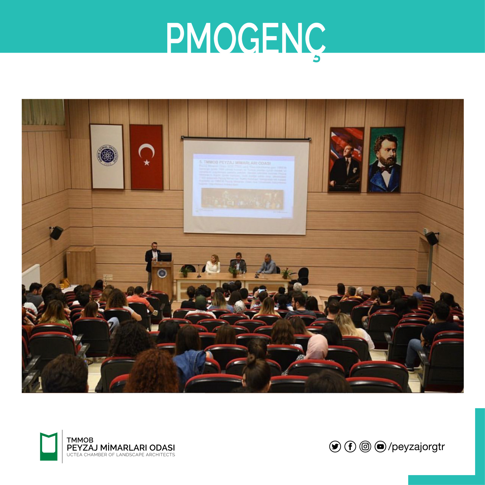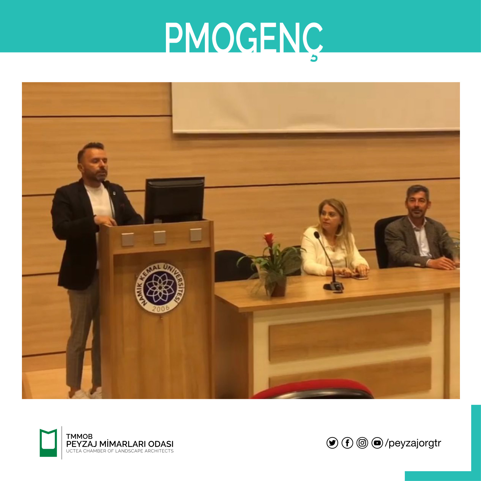 Odamız 15. Dönem Yönetim Kurulu Başkanı Yasin OTUZOĞLU, 2. Başkanı Barış IŞIK, Genel Sekreteri Özay YERLİKAYA`nın katıldığı söyleşide Odamız, bağlı olduğumuz üst birlik TMMOB, tüm dünyada Peyzaj Mimarlarının çatısı olan ve uluslararası üyesi olduğumuz IFLA, Peyzaj Mimarları Odası Öğrenci Üye Komisyonu (PMOGenç) faaliyetleri ve mesleğimiz hakkında bilgiler paylaşılmıştır.