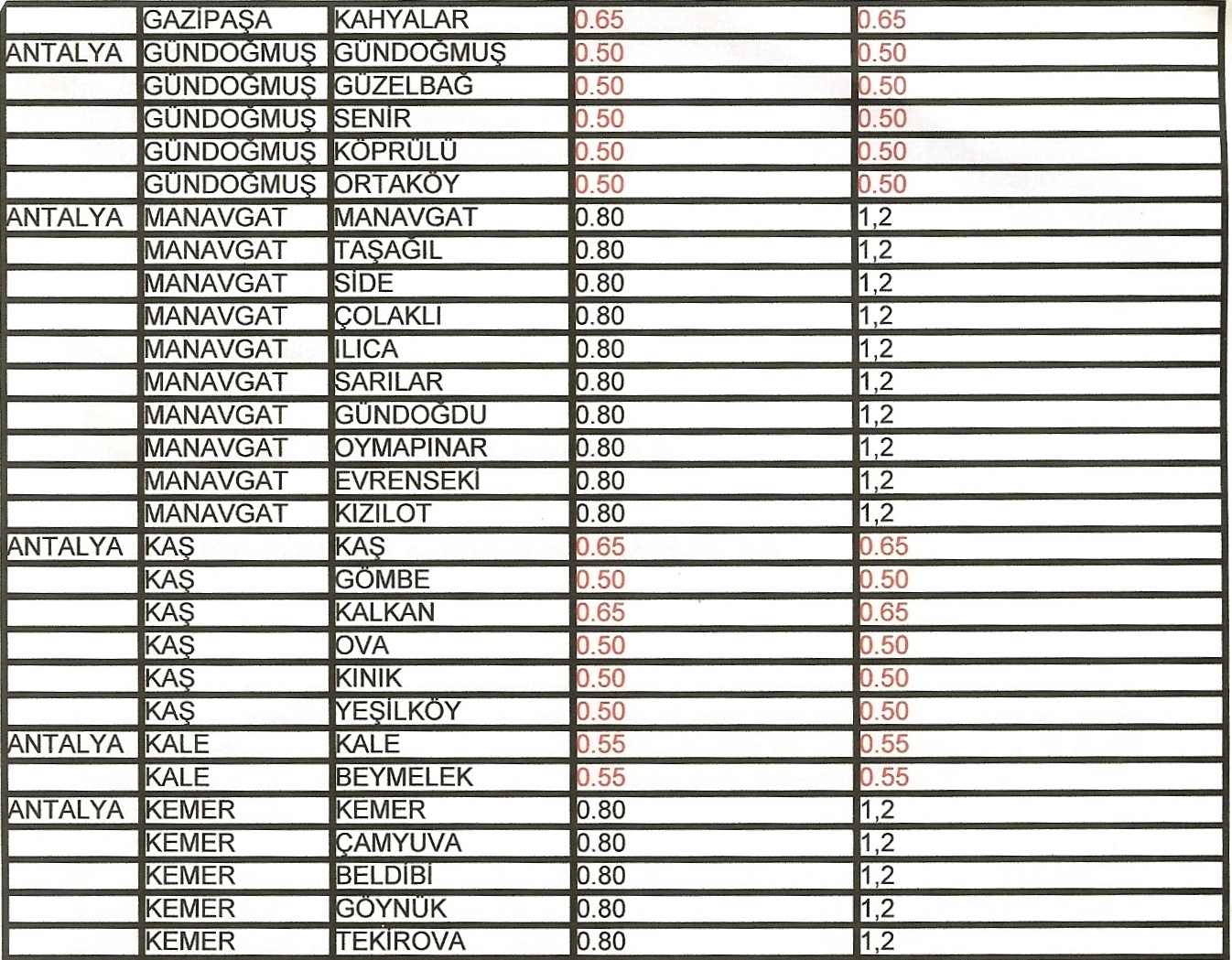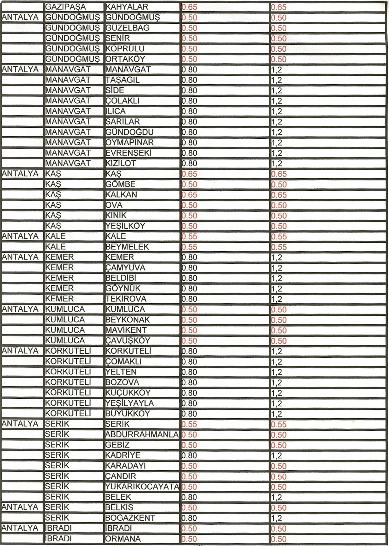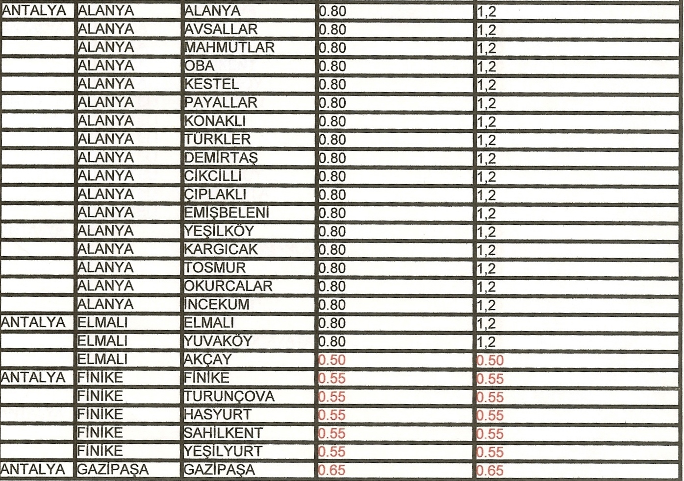 Antalya merkez ve ilçelerinde kullanılacak Belediyeler Bölge Katsayıları Ek‘ te yer alan dosyalarda tarafınıza sunulmuştur.