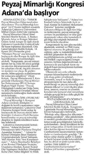 PEYZAJ MİMARLIĞI KONGRESİ ADANA`DA BAŞLIYOR - 13.11.2013 / ADANA GÜNLÜK GAZETESİ