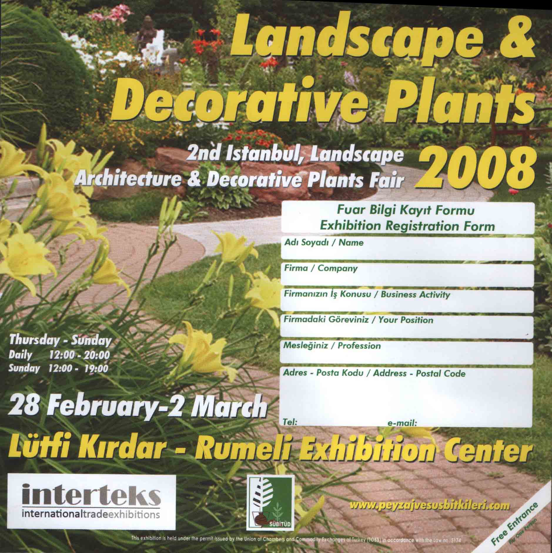 28 Şubat - 2 Mart tarihlerinde Lütfi Kırdar - Rumeli Exhibition Center‘da yapılacak olan 2. İstanbul, Peyzaj Mimarisi ve Süs Bitkileri Fuarı her gün 12:00-20:00, pazar günü 12:00-19:00 saatleri arasında ziyarete açık olacaktır.