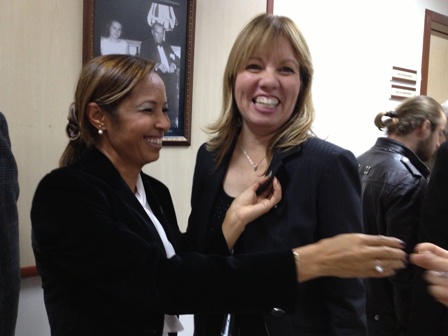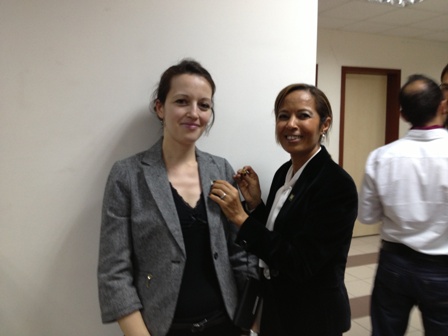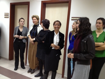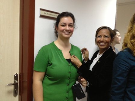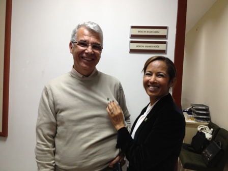 Şube Yönetim Kurulu Başkanı Bilgi Yarcı Bukrek Oda örgütlenmesi, mesleki mücadelede Oda‘nın durduğu yer, hedefler ve çalışmalar hakkında bilgi verdi. Yönetim Kurulu Başkanı Bukrek, Kokteyl sırasında Ege Üniversitesi Öğretim Üyelerine Odamızın rozetini taktı.