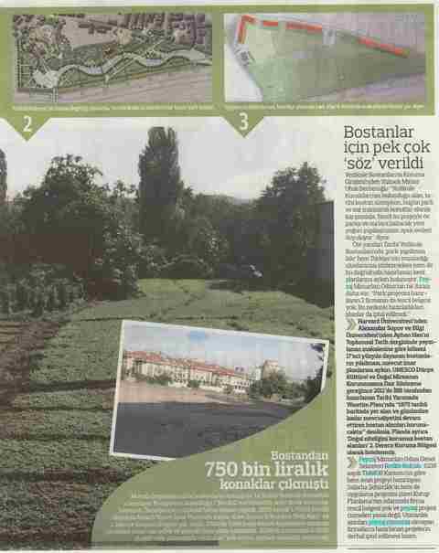 Bostandan 3 plan çıktı. Yedikule‘deki tarihi bostanlarda uygulama planında boş bırakılan 4 dönümlük arazi, Fatih Belediyesi‘nin dağıttığı planlarda ‘park‘ olarak işaretlendi. Ancak aynı alanlar, avan projede imara açık gözüküyor. Yedikule‘de tarihi bostanların üzerine yapılmak istenen park için 1 değil 3 farklı proje birden olduğu ortaya çıktı. Şantiye alanında tabelayla ilan edilen ‘Uygulama Plarn‘nda tarihi bostanlardan bir bölüm ‘boş‘ bırakılmış. Üzerinde ne olduğuna dair herhangi bir bilgi bulunmuyor. Ama Fatih Belediyesi‘nin basına dağıttığı bilgi notları ve planlarda tarihi bostanlarda 4 dönümlük arazi ‘park ve yeşil alan‘ olarak planlanmış. İstanbul 2. Numaralı Koruma Kurulu‘ndan geçirilen avan projede ise aynı 4 dönüm, imara açılarak üzerine 2 ve 3 katlı konutlar yapılmış. Tarihi Sur Koruma Bandı‘nda ve sit alanı içinde yükselen Yedikule Konakları da daha önce benzer şekilde inşa edilmişti. Fatih Belediyesi yetkilileri, Radikal‘in soruları üzerine, uygulama planında ‘boş bırakılan‘ geniş bölümde kamulaştırma sorunları olduğunu, bu nedenle planda boş bırakıldığım söyledi. Toplam 4 dönümlük bostanda 3 değişik plan olmasıyla ilgili olarak ise belediyeden bir açıklama gelmedi. Sadrazam ve Ortodoks Kilisesi‘nin bostanları Yedikule‘deki şantiye tabelasında ‘boş bırakılan‘ bölgelerde Sadrazam Bayram Paşa ve Panayia (Belgrad) Rum Ortodoks Kilisesi‘nin 18. yüzyıldan beri ekilen bostanları var.