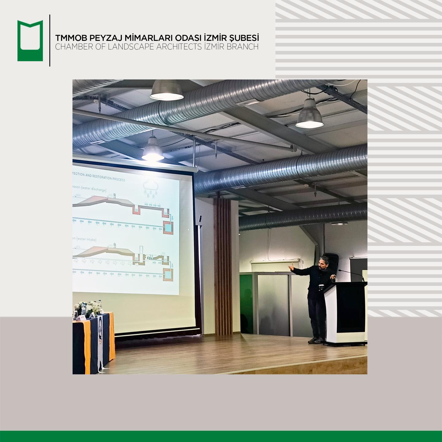26 Kasım 2024 Salı günü üyelerimiz Doç. Dr. Nurdan Erdoğan, Peyzaj Y. Mimarı Nuran Altun ve Peyzaj Y. Mimarı Hüseyin Öztürk’ün sunumlarıyla “Kentlerin Doğallığını Ölçmede İndekslerin Etkinliği, Kış Mevsimi Kentsel Isı Adası Etkisi Analizi: İzmir Örneği”, “Agroekolojik Bir Çiftlik Modeli: Doğa Temelli Çözümlerle Uyarlanabilir Yeniden Kullanım” ve “Türkiye’nin Farklı İklim Bölgesinde Yeşil Alan Stratejileri ve Su Yönetimi: Mavi-Yeşil Altyapı Modelleri” konularını içeren söyleşi serisi gerçekleştirildi.