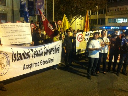 Üniversitelerde araştırma görevlilerinin iş güvencesi olmadan çalışmalarının önünü açan 2547 sayılı Yükseköğretim Kanunu‘nun 50/D maddesine ve yeni YÖK yasa tasarına karşı İstanbul Teknik Üniversitesi‘ndeki asistanların bir süredir verdiği mücadele için TMMOB İstanbul İKK‘nın da desteklediği basın açıklamasına Şubemizi temsilen Sn. Başak ÖZER katıldı.
