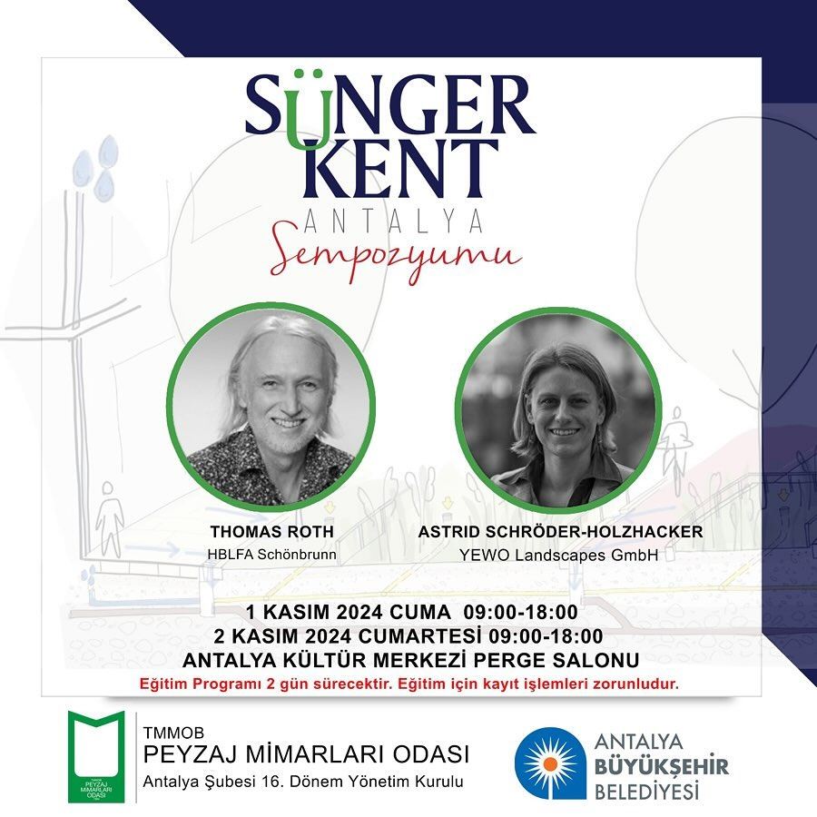 Değerli üyelerimiz TMMOB Peyzaj Mimarları Odası Antalya Şubesi ile Antalya Büyükşehir Belediyesi iş birliğinde 1-2 Kasım tarihlerinde 2 gün sürecek Sünger Kent Eğitim Sempozyumu detayları ve programı bilgilerinize sunulmuştur.