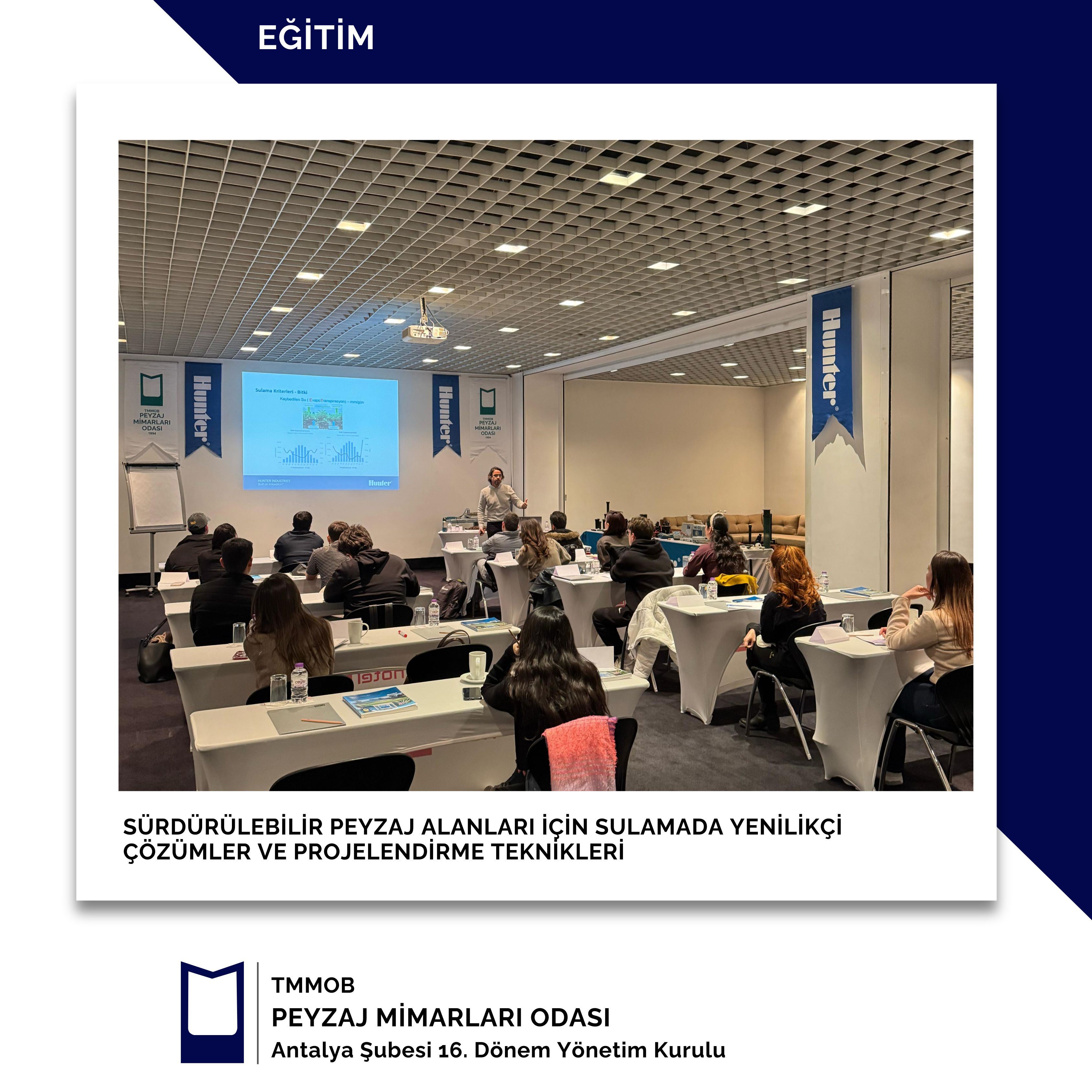 Eğitimde; Peyzaj Sulamasında Küresel Değişimler, Projelendirme Esasları, Projelendirme Detayları ve Ürün Seçimine kadar birçok konu hakkında bilgi verildi.