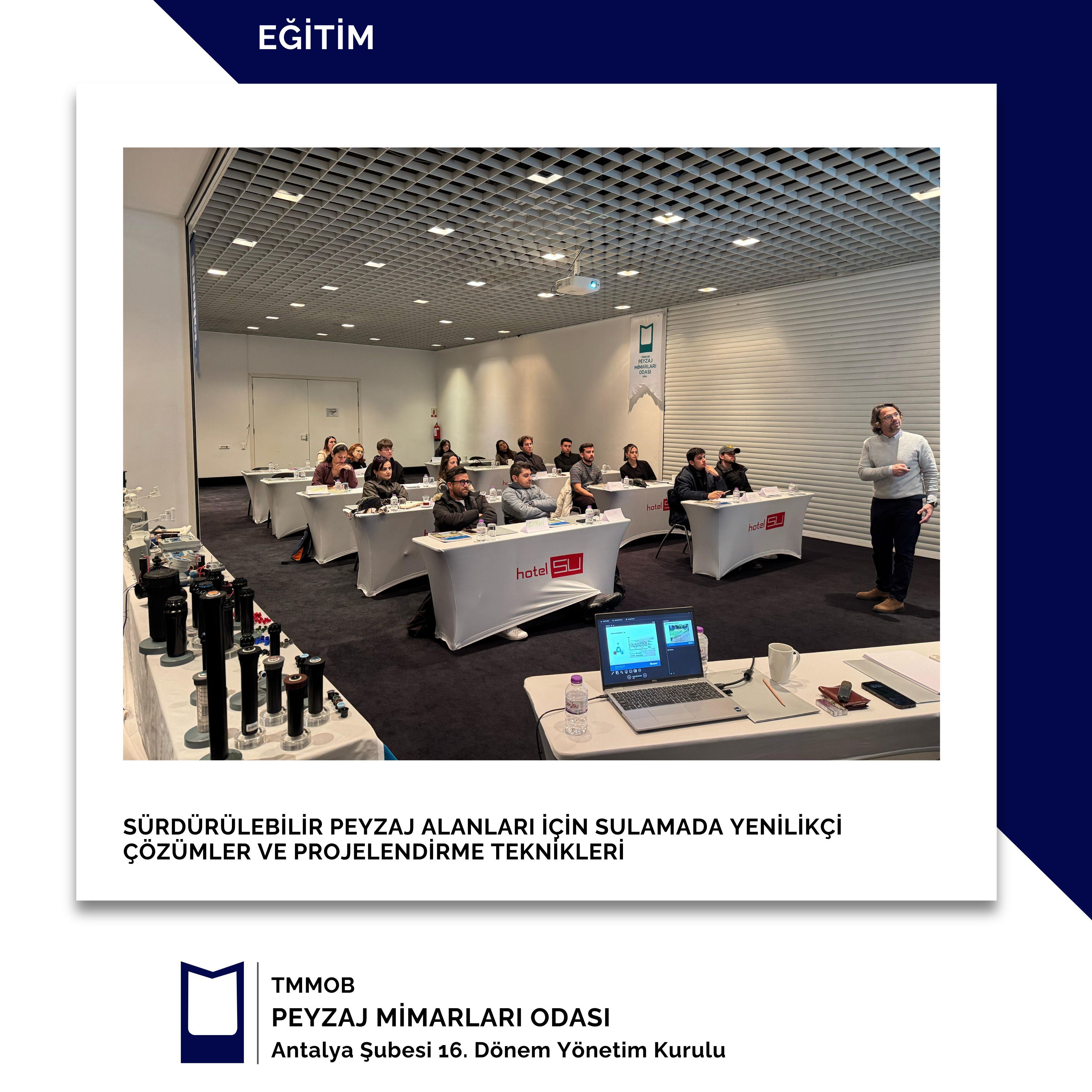 24-25 Şubat 2025 tarihinde Sürdürülebilir Peyzaj Alanları İçin Sulamada Yenilikçi Çözümler ve Projelendirme Teknikleri Eğitimi Odamız Genel Merkez Koordinatörlüğünde 24-25 Şubat 2025 tarihinde Hotel Su'da gerçekleştirildi.