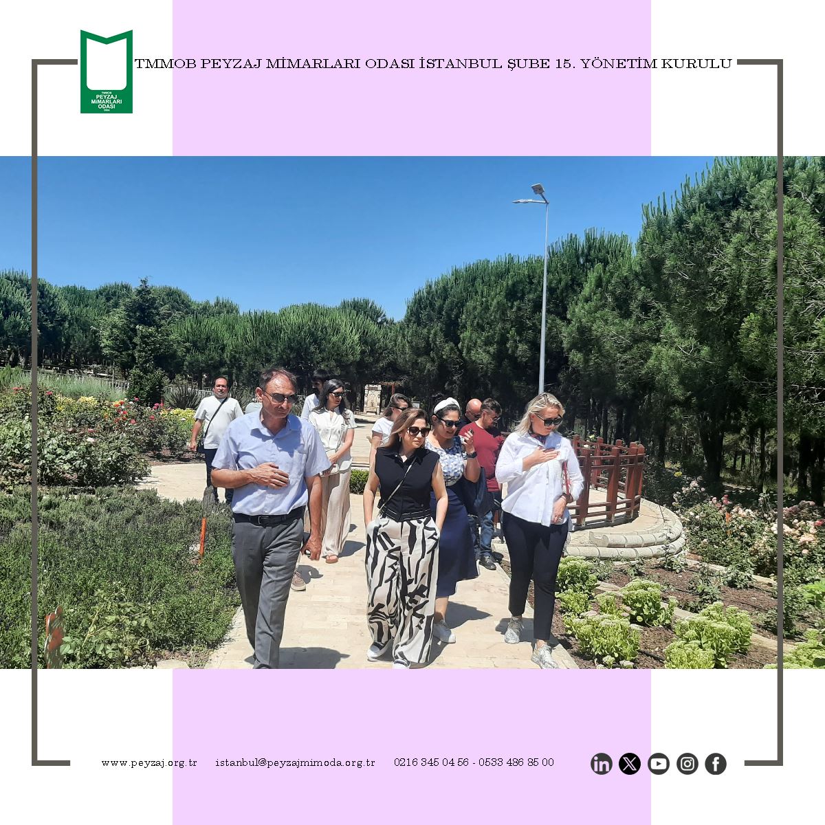 Nazik davetleri için T.C. Pendik Belediyesi Teknik Başkan Yardımcısı Sn. Tarık KURU’ya ve Park Bahçeler Müdürü Sn. Hami ATAN’a teşekkür eder, çalışmalarında başarılar dileriz.