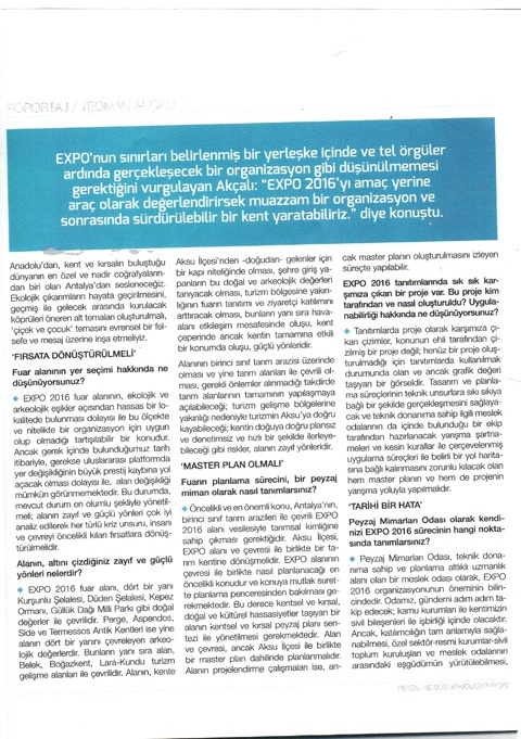 Şube Yönetim Kurulu Başkanımız Teoman AKÇALI`nın EXPO 2016`ya dair açıklamaları, PLANT Dergisi Aralık ayı sayısında
