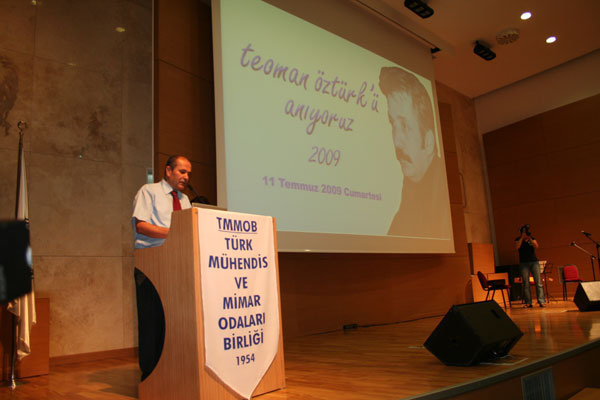 Türk Mühendis ve Mimar Odaları Birliği'nin 1973-1980 yılları arasında başkanlığını yapan, mühendis-mimar hareketinin toplumcu bir çizgiye sahip olmasında önder ve yiğit kişiliği ile ön saflarda yer alan, TMMOB ile bütünleşen Teoman Öztürk ölümünün 15. yıldönümünde 11 Temmuz Cumartesi günü düzenlenen çeşitli etkinliklerle anıldı.