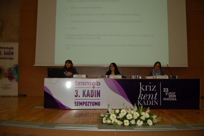 lki 2015 yılında gerçekleştirilen TMMOB Kadın Sempozyumu`nun üçüncüsü 23 Şubat 2019 tarihinde İnşaat Mühendisleri Odası Teoman Öztürk toplantı salonunda "Kriz, Kent ve Kadın" temasıyla gerçekleştirildi.