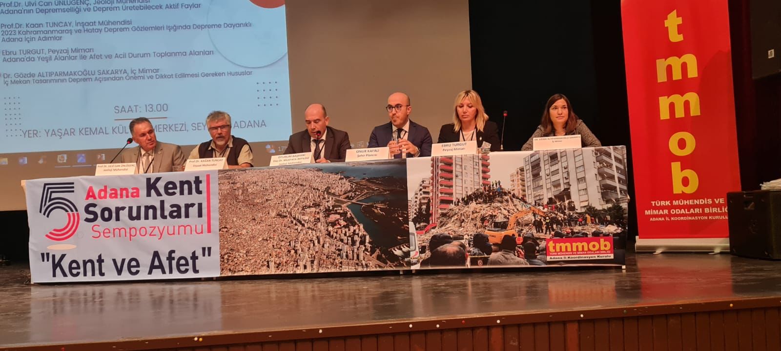 TMMOB Adana İl Koordinasyon Kurulu tarafından 17-18 Kasım 2023 tarihlerinde Seyhan Belediyesi Yaşar Kemal Kültür Merkezinde "Kent ve Afet" Temasıyla 5. Adana Kent Sorunları Sempozyumu düzenlendi. Sempozyumda kent sorunları, deprem ve depremin ardından oluşan sorunlar değerlendirildi, öneriler sunuldu.