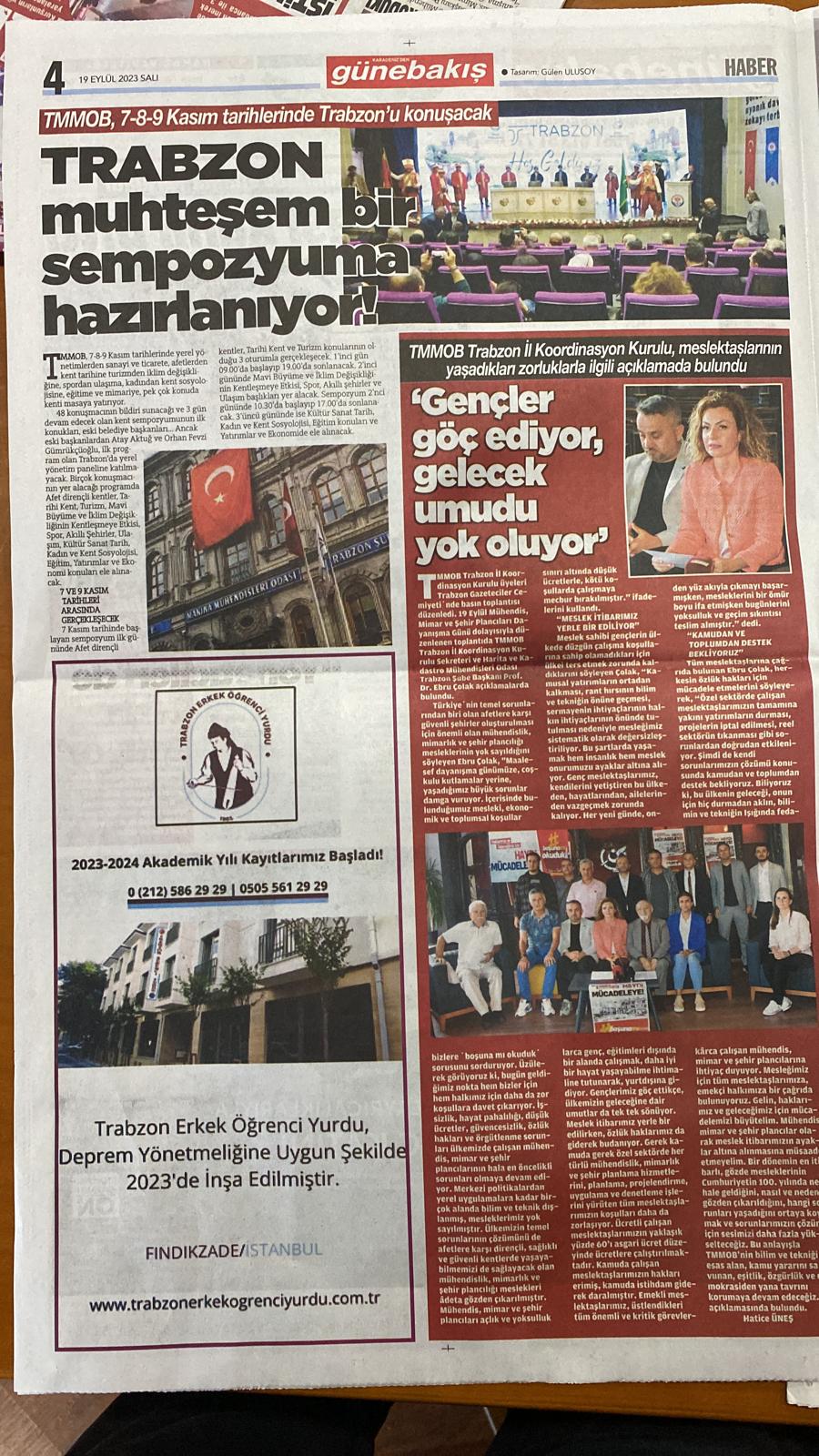 18 Eylül 2023 tarihinde TMMOB Trabzon İl Koordinasyon Kurulu, "19 Eylül Mühendis, Mimar ve Şehir Plancıları Dayanışma Günü" dolayısıyla Trabzon Gazeteciler Cemiyetinde basın açıklaması yapılmıştır.