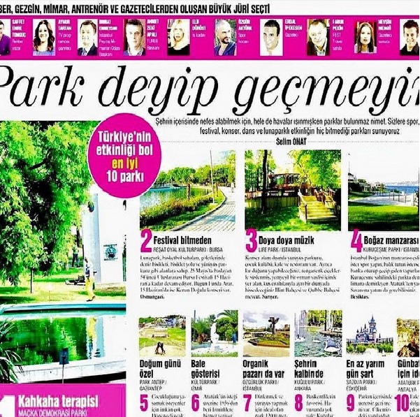 "Türkiye`nin Etkinliği Bol En İyi 10 Parkı"nın birinci sırasında ise Maçka Demokrasi Parkı yer alırken; Lifepark, Kuruçeşme Parkı ve Özgürlük Parkı`da listede bulunmaktadır.