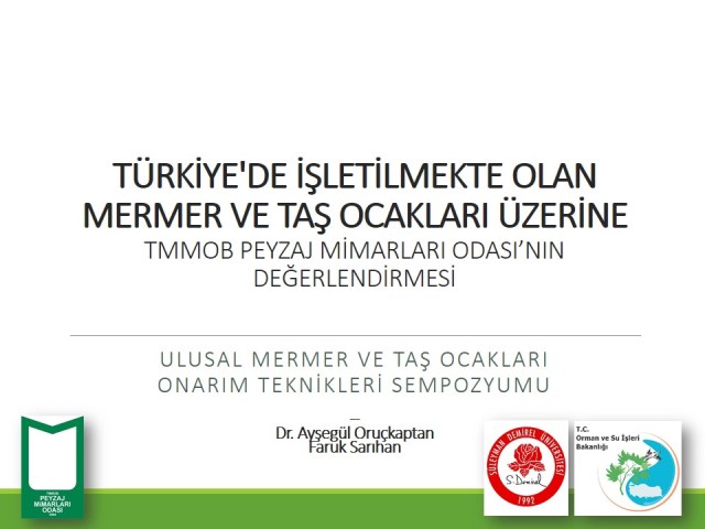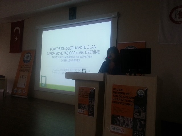 Oda Başkanı Ayşegül Oruçkaptan ve 2. Başkan Faruk Sarıhan "Türkiye`de İşletilmekte Olan Mermer ve Taş Ocakları Üzerine TMMOB Peyzaj Mimarları Odası‘nın Değerlendirmesi" konulu bildiriyi sunmuş olup, düzenlenen sempozyum ile ilgili görüşlerini bildirdi.
