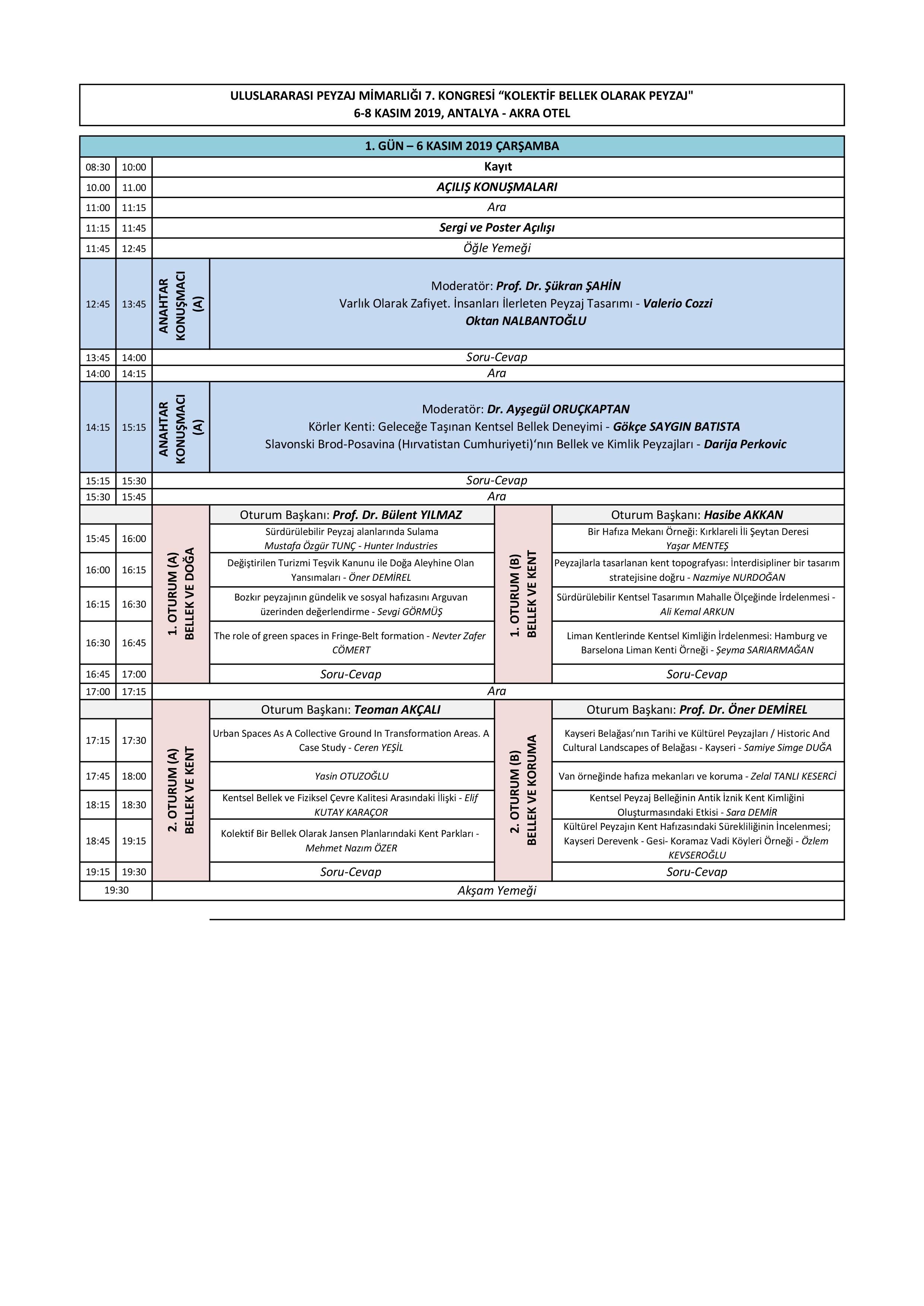 6 - 8 Kasım 2019 tarihlerinde Antalyada gerçekleştirilecek olan Uluslararası Peyzaj Mimarlığı 7. Kongresi programı belli oldu.