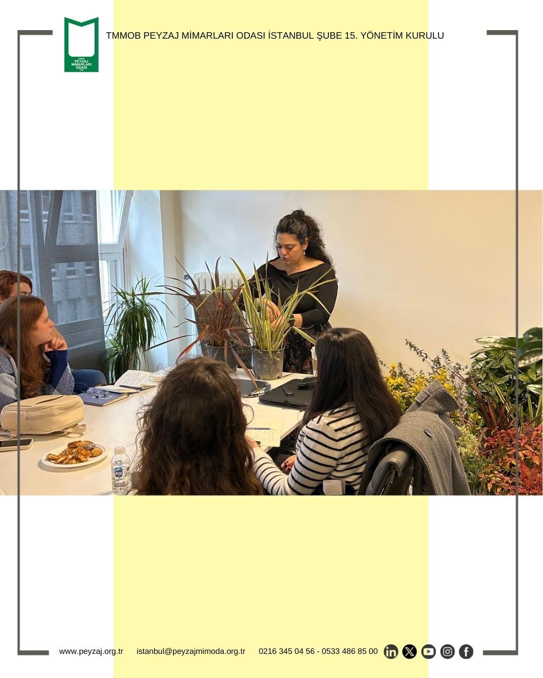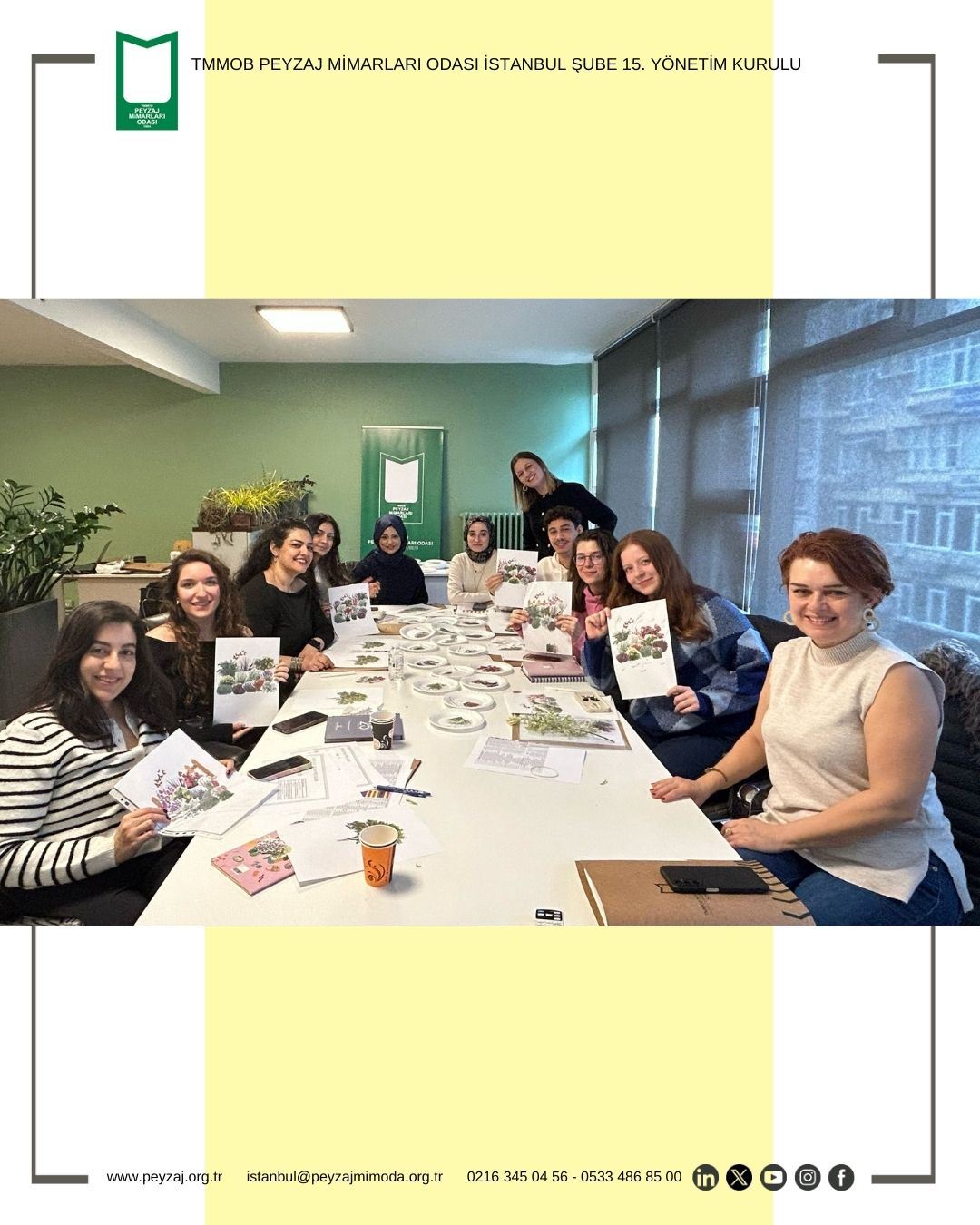 TMMOB Peyzaj Mimarları Odası İstanbul Şubesi olarak düzenlediğimiz, Uygulamalı Bitkisel Tasarım Atölyemiz Yönetim Kurulu Üyemiz Peyzaj Yüksek Mimarı Sn. Nihan Sevinç MUŞDAL yürütücülüğünde gerçekleştirilmiştir.