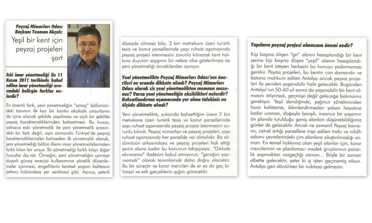YENİ İMAR YÖNETMELİĞİ VE PEYZAJ MİMARLIĞI, SON NOKTA DERGİSİ` NDE